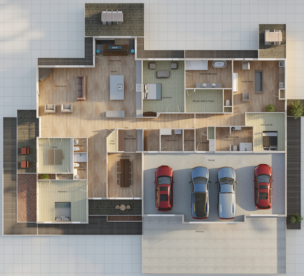 a ade un poco de nieve en el exterior en el cesped verde y arbustos el interior no lo modifiques