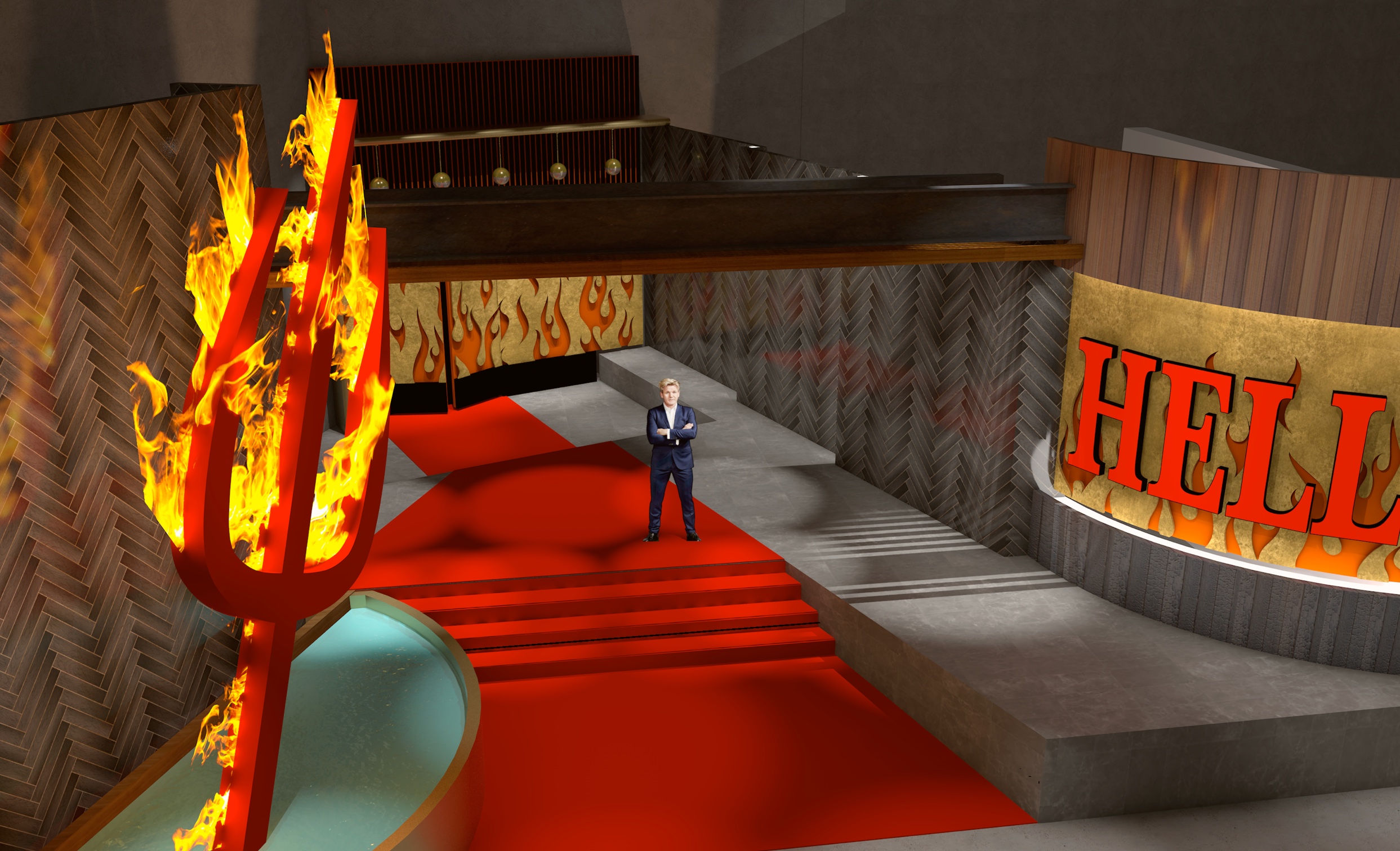 render this image photo realistically do not change the architecture or the materials do not change the person in the image