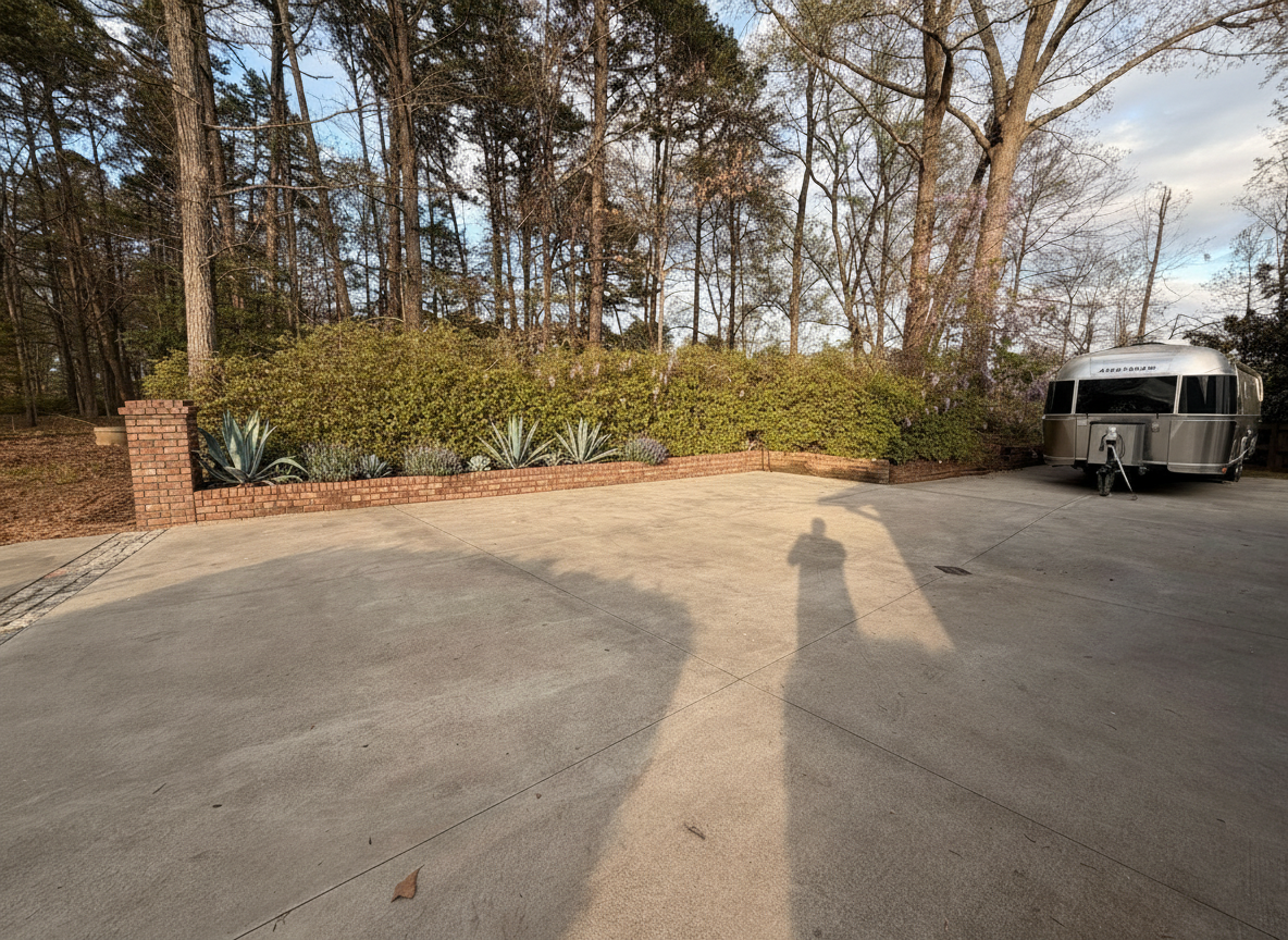 remove the vegetation that is growing over the wall keep existing vegetation as in photo make brick column 3 courses higher than wall