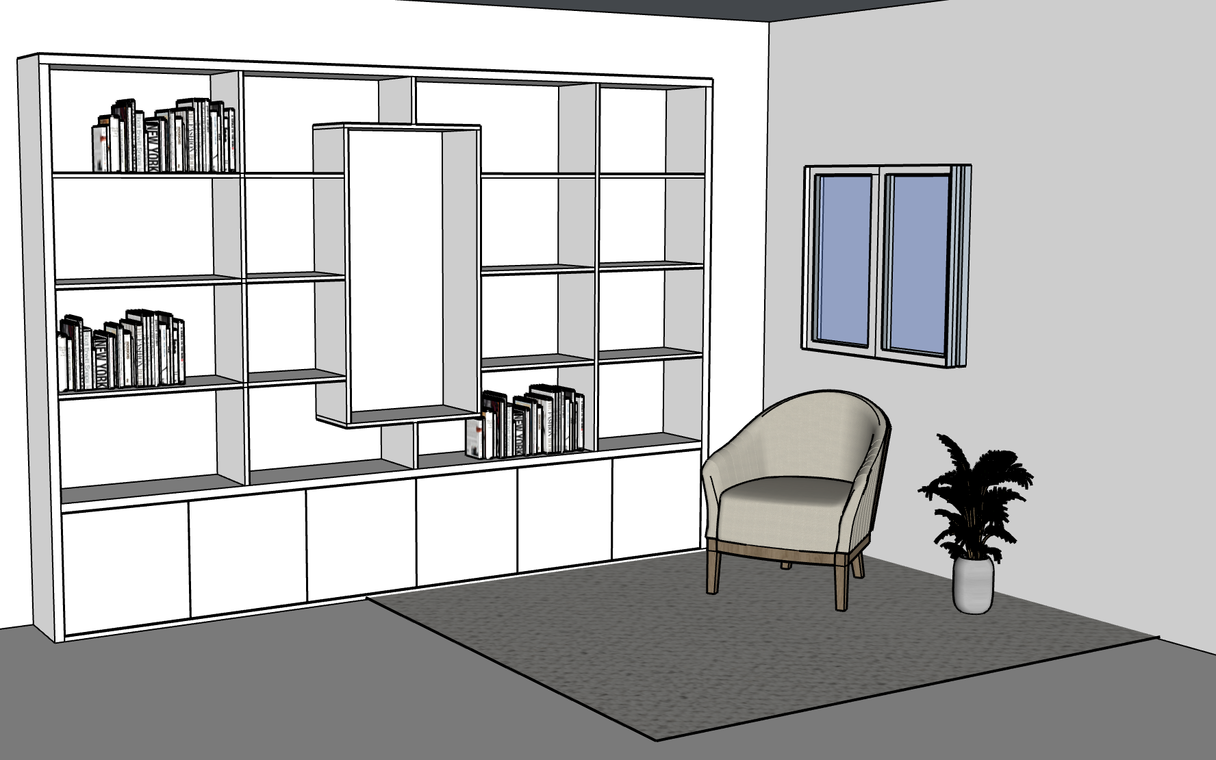 this is a bookshelf in a library make it styligh naturalar colour based and modern make it in a sunset lightning and also make it look extremely cosy adding some pillows books etc