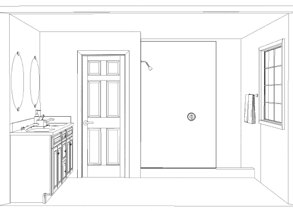 a modernist bathroom with light wood grain floor and soft warm light coming through the window the shower walls being a light grey onyx