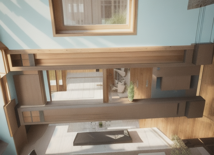 enhance this 3d render while strictly keeping all existing materials and colors do not change or replace any material improve the realism of every material by refining textures adding subtle imperfections accurate reflections and physically correct roughness add warm white led lighting 2700 3000k inside all shelves to softly illuminate the surfaces make all lamps with white lampshades emit a warm soft white glow brighten the overall scene to avoid darkness and create a spacious airy atmosphere introduce natural daylight entering through the windows with subtle sun cast shadows as if it is daytime maintain the original layout and design while achieving a clean high end photorealistic look