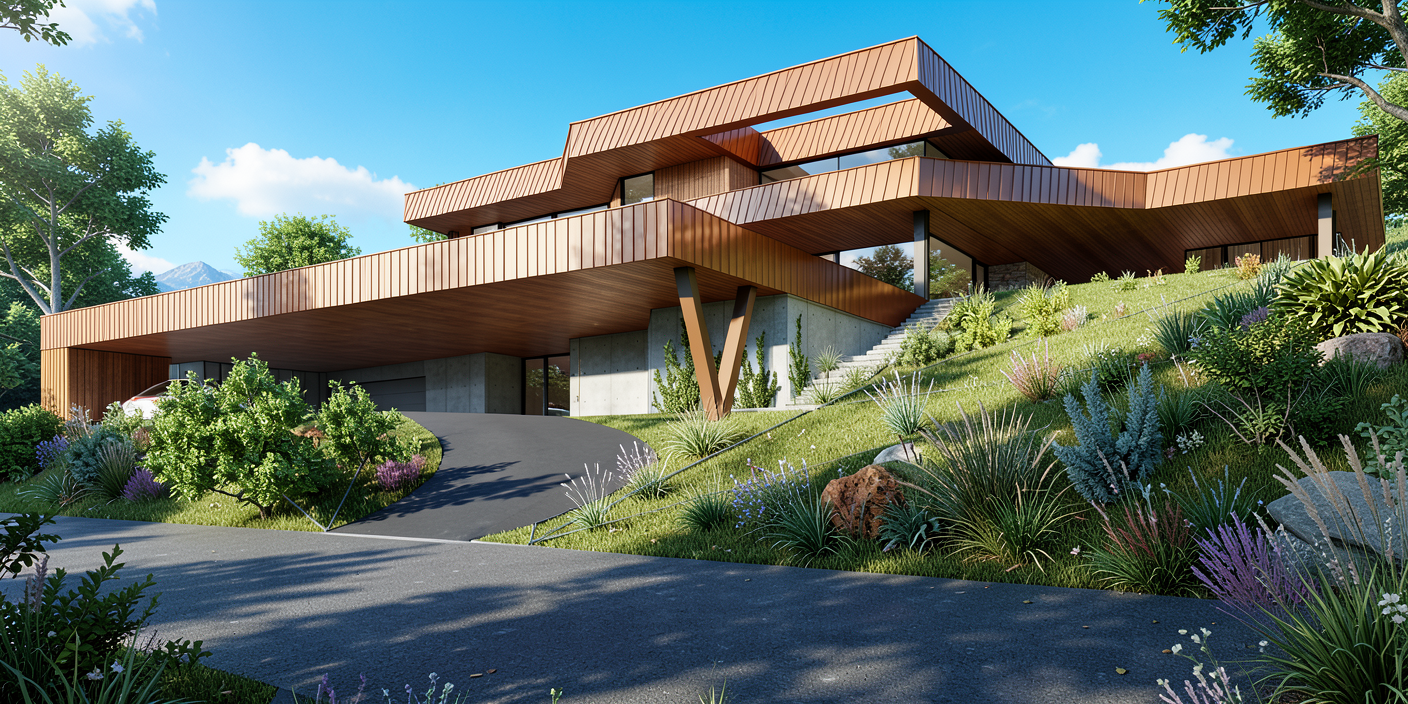 rendu photor aliste textures r alistes avec variations et imperfections bois naturel d taill lumi re naturelle douce ombres r alistes profondeur terrain en pente montagne en arri re plan
