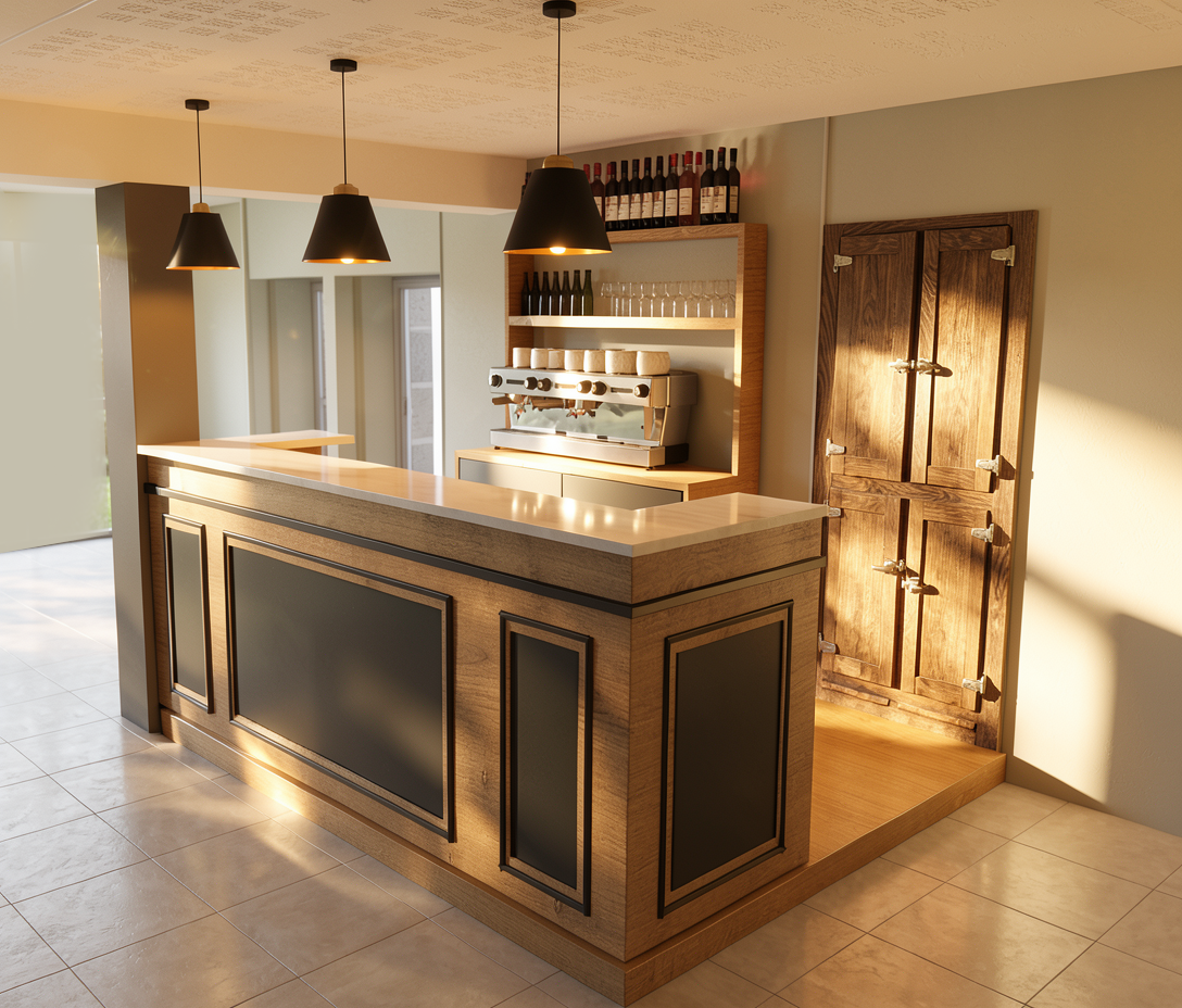 replace the black panel around the bar by wooden panel