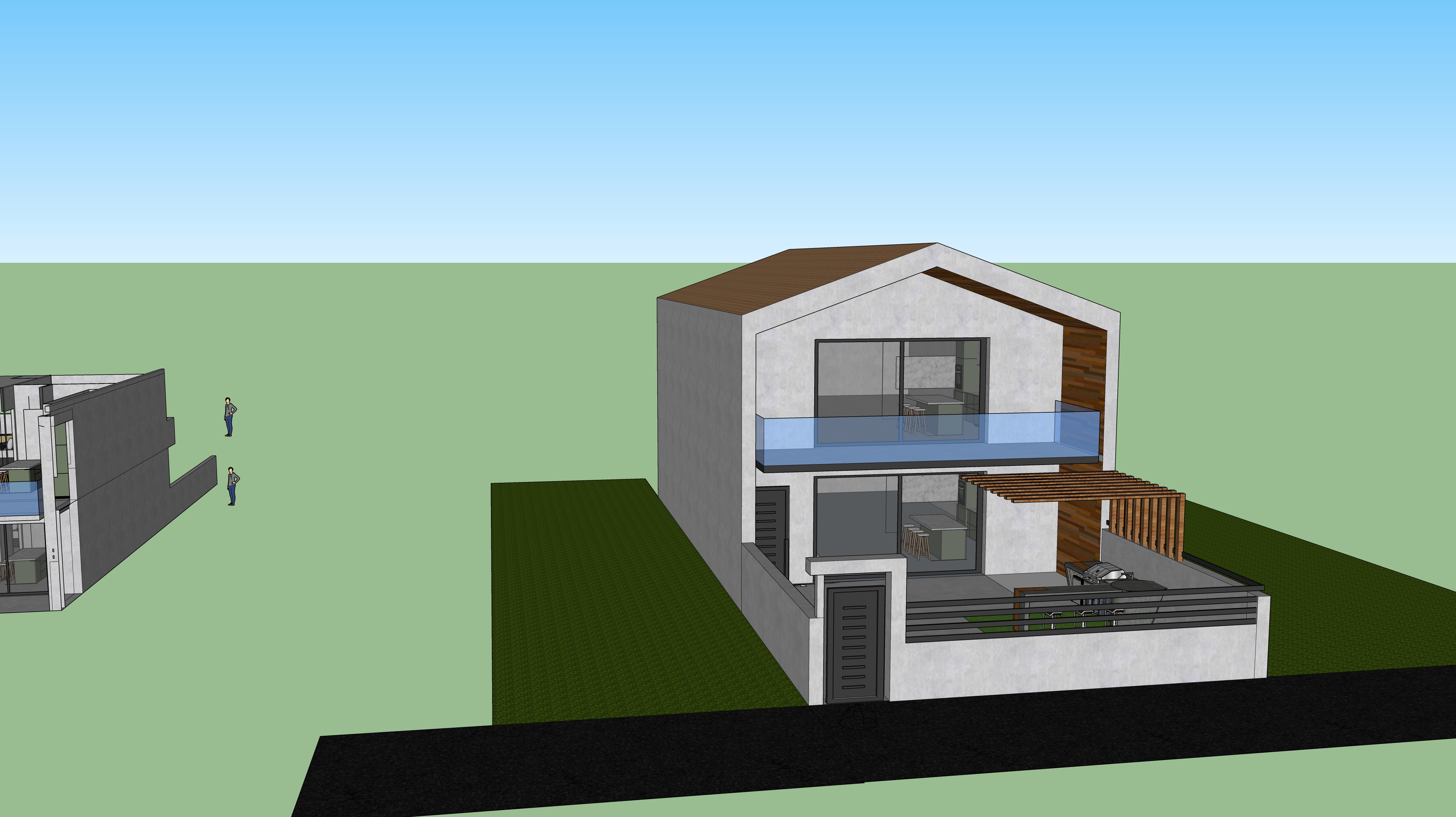 photorealistic rendering of this building as you can see on the balcony there is glass used as the railing for the rest i want light colored polished cement microcement finishes everywhere the main entrance door will be dark grey to black the same color as the aluminum elements meaning the building s window and door frames also the underside of the balcony glass that is the balcony slab will be the same color as the aluminum frames apart from that create a beautiful house following exactly the architecture i have sent you with tasteful and well designed lighting
