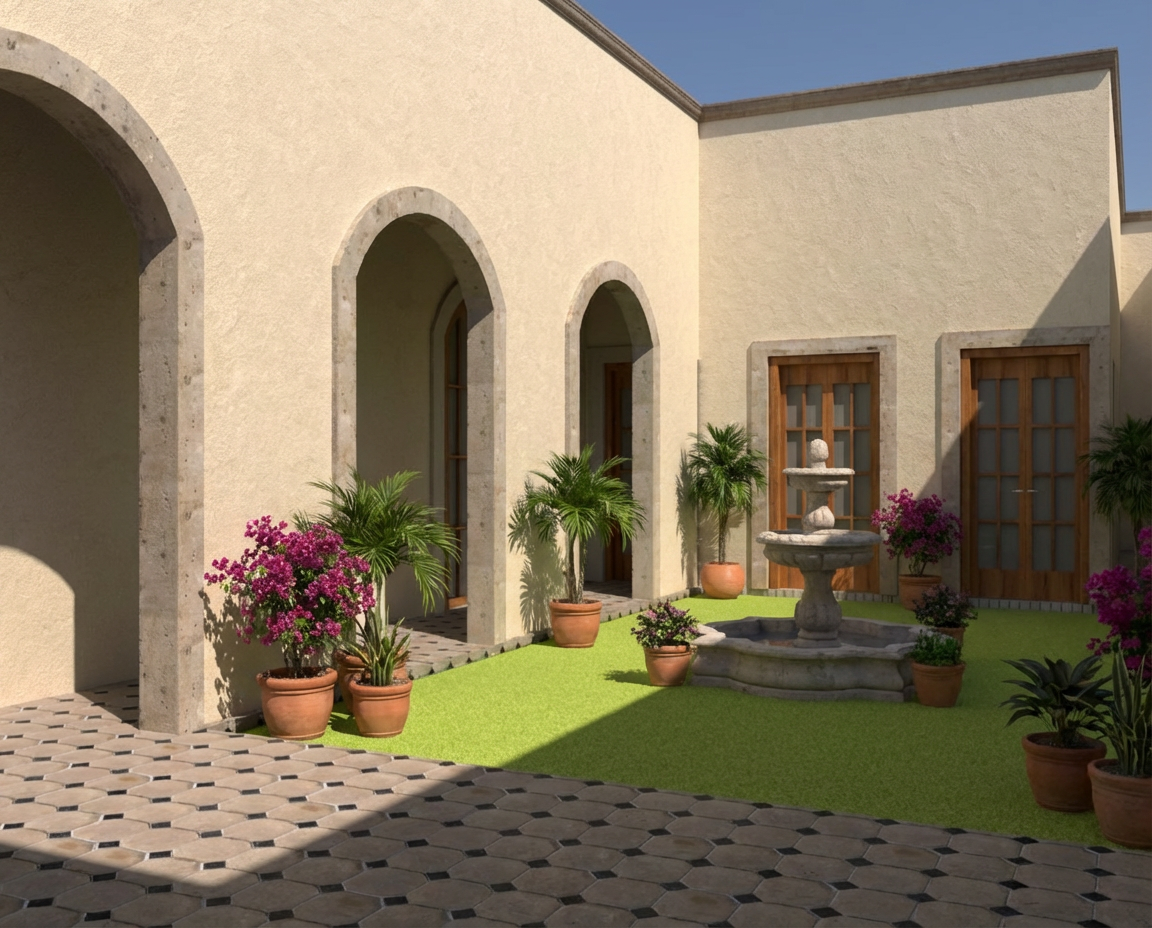 soft even ambient lighting from the two lit sconces creating realistic but clean architectural shadows high key overall illumination with gentle gradients to define depth and material texture professional clean minimalist elevation style large terrazzo tile flooring solid wood cabinetry in medium dark wood tone with visible straight grain and matte finish use dense cross hatching and darker tonal values for wood texture left side has two stacked drawers over one deeper drawer central double cabinet doors right side has one wide drawer over two smaller stacked drawers all hardware is sleek horizontal brass pulls above the vanity two identical wall sconces each with a brass gold bracket and spherical white opal glass globe shade turned on with soft glowing light large arched top mirror with thin polished brass frame full height backsplash wall behind everything vertically oriented rectangular ceramic tiles approximately 4x12 proportion laid in a perfect grid with crisp white grout lines tiles rendered in light to medium gray green with subtle texture shading to show the vertical orientation and slight sheen thick white marble or quartz slab with very subtle veining polished surface bright white with soft gray shadows underneath the overhang rectangular undermount sink white porcelain sink centered on the countertop modern faucet brass wall mounted or deck mounted gooseneck faucet with two separate handles shown in bright metallic tone