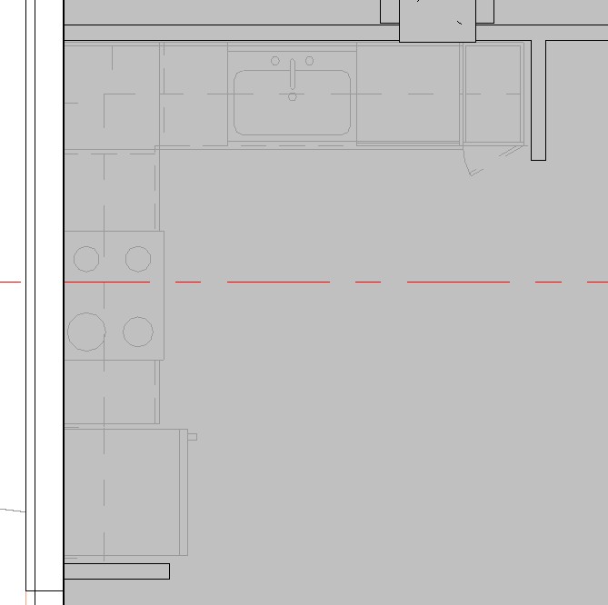 please take the floor plan of a kitchen layout and turn it into a view looking into the kitchen here are the finishes to put in the room countertop height should be at 3 0 and upper cabinets end at 8 0 the cabinet finish will be wilsonart palisades oak backsplash will be full height with emser catch gray in matte 3x12 installed brick countertops luna quartz avalanche wall color will be sherwin williams first star wall base color will be a rubber base johnsonite in color colonial grey architecture