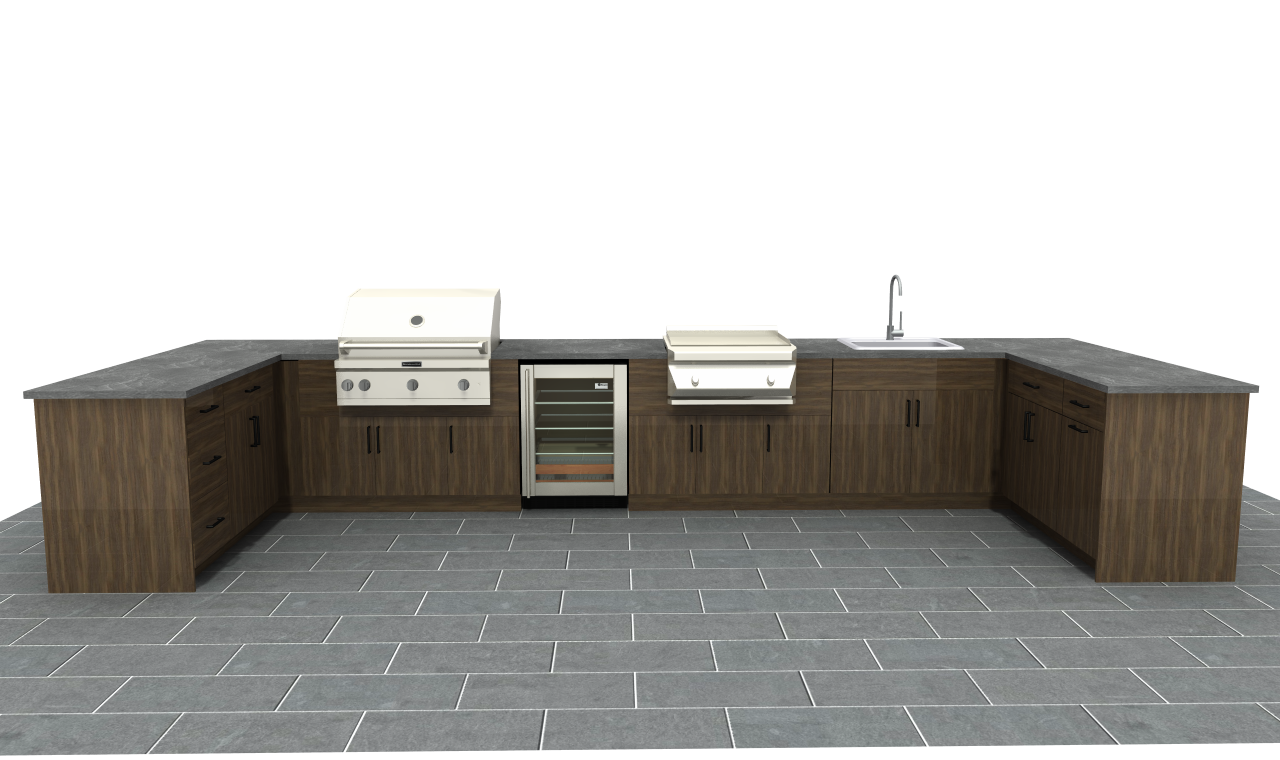 add white vinyl fence directly behind kitchen add backyard scenery behind fence