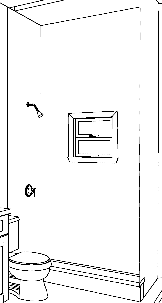 make the shower walls vertical gray veined 12x24 tiles add a white bathtub at base odf shower