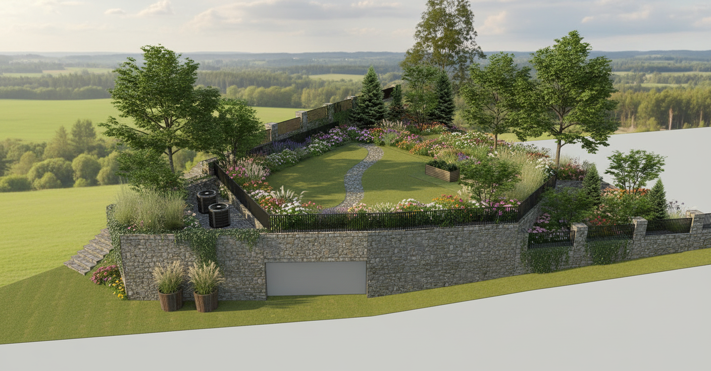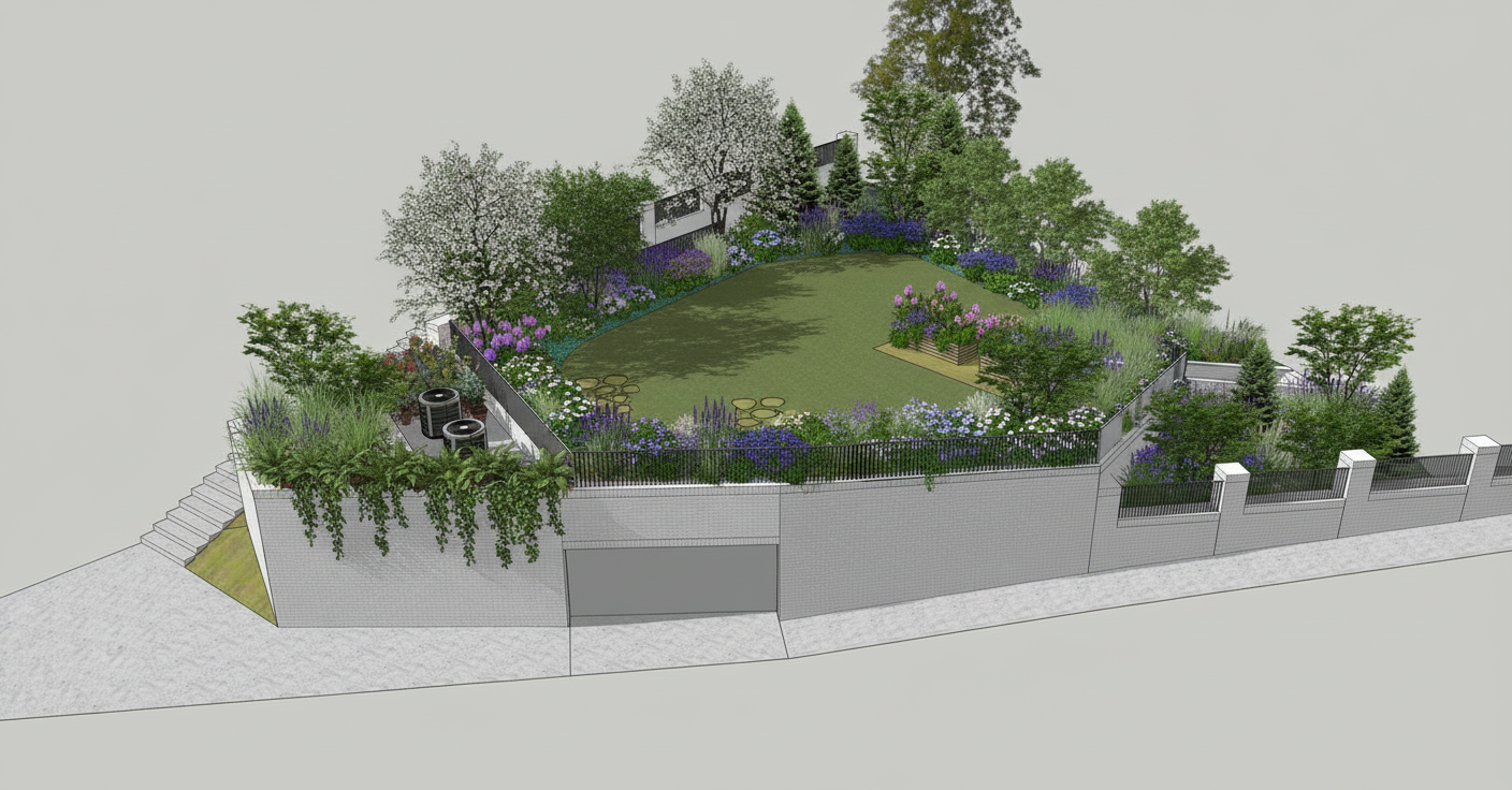 make the arches smooth make the dark edge of the roofline lighter in finish to match the lower level add european style planting to the building make the image early evening and add uplighting to the exterior of the building