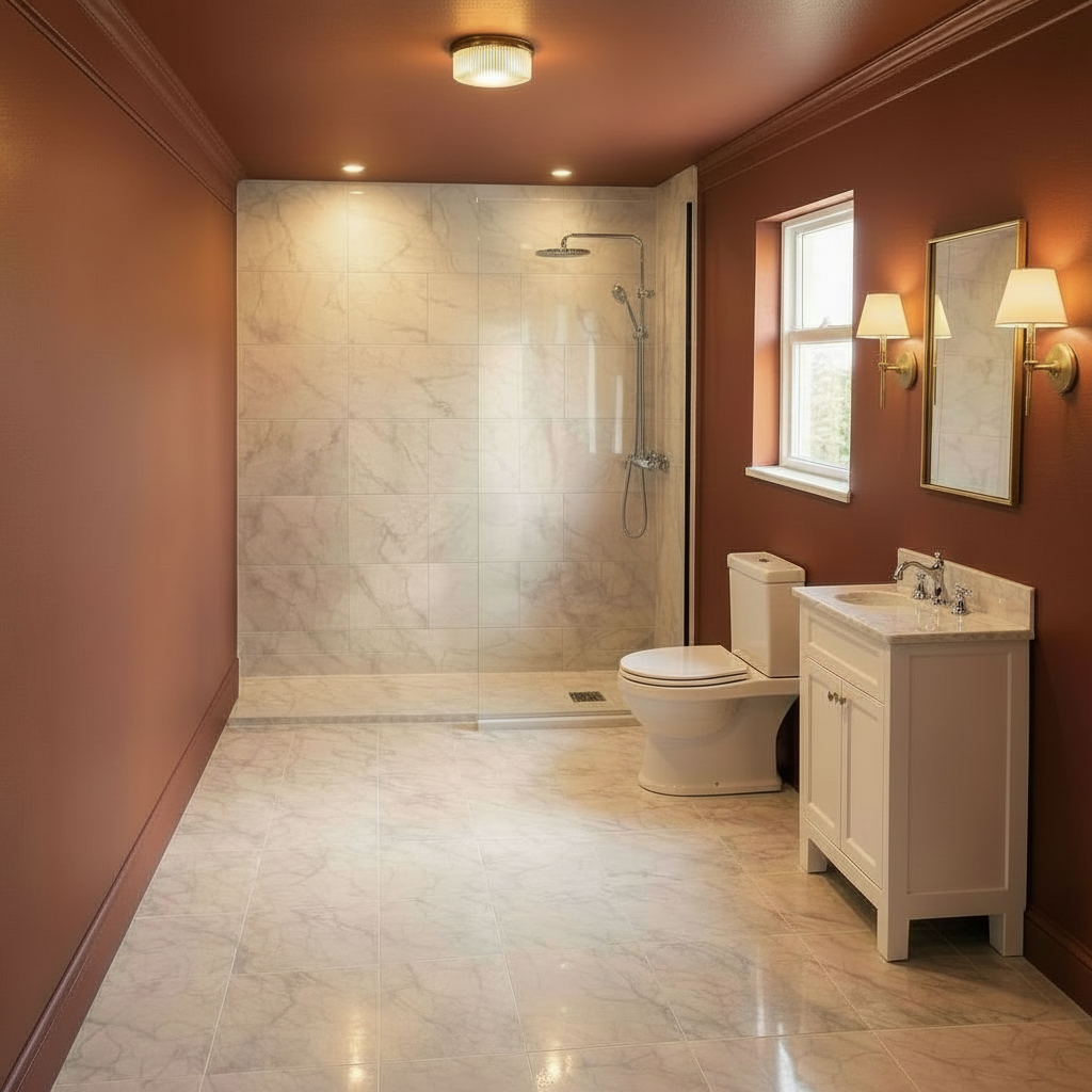 could you add a little interior styling layering to this bathroom to the wall on the left keep layout and colurs the same dont put anything int othe shower area