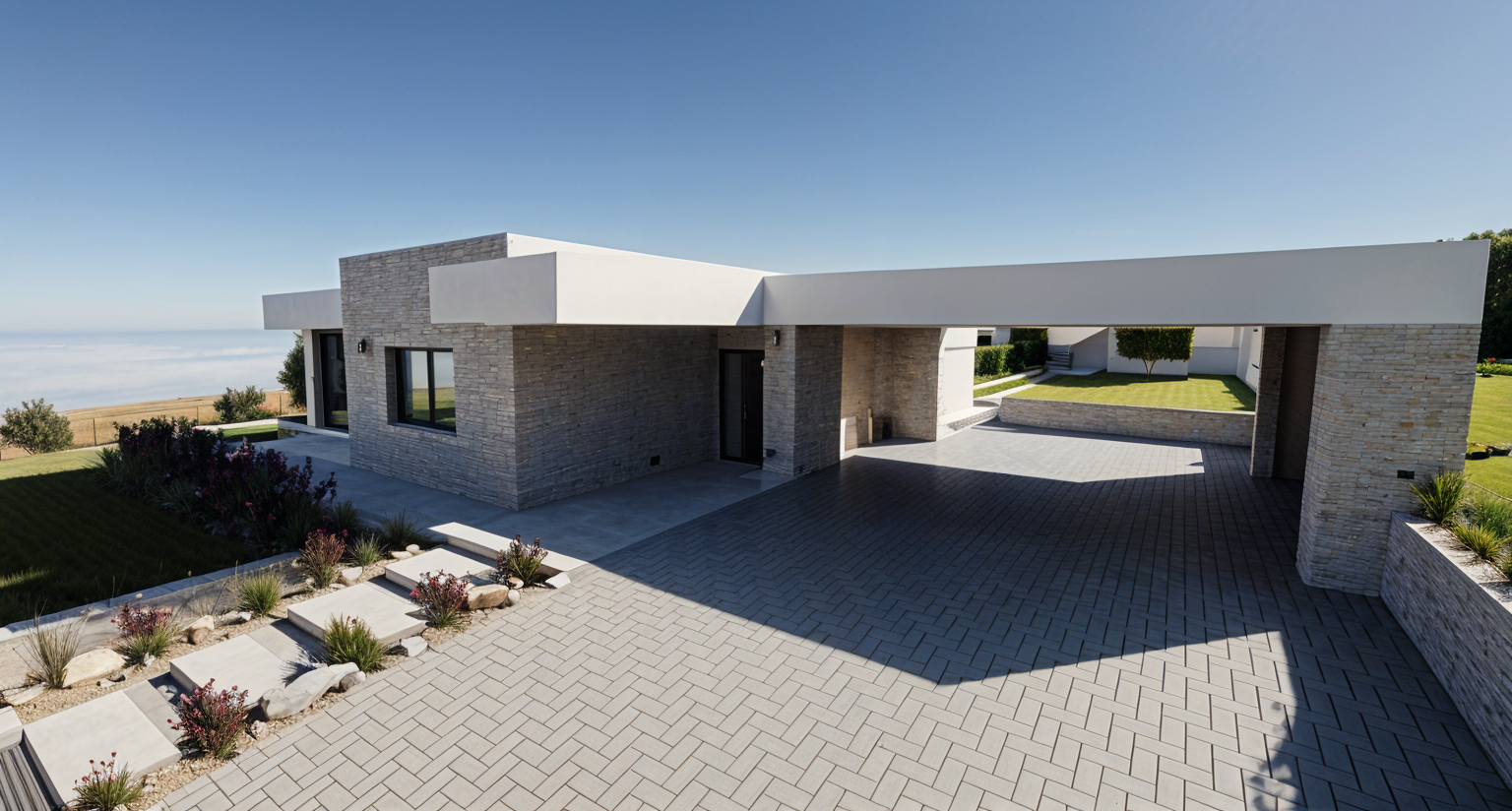create a modern elegant living space emphasize the sleekness and coziness of a small open plan kitchen and living room use soft muted earth tones for the walls and kitchen cabinets primarily warm greys and taupes the wooden elements including the tall cabinet and dining table should be a rich deep wood color to add warmth the armchairs should be upholstered in a soft sage green fabric contributing a subtle splash of color the pendant lights should be soft white globes creating a gentle ambient glow add sophisticated glassware and white plate settings for the dining table to enhance the refined atmosphere ensure the room is filled with natural light for an airy welcoming ambiance ceiling lamp must be like on the pictur the line with reflectors
