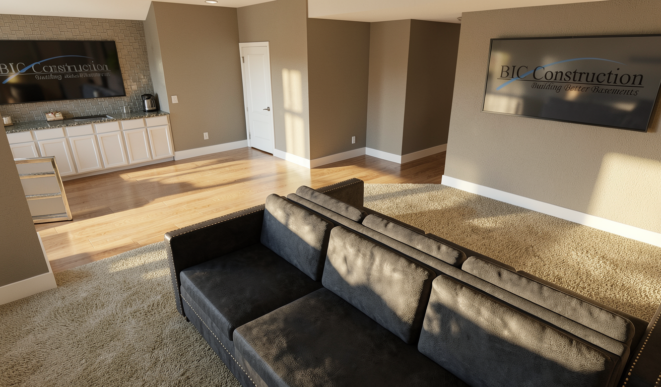 back view of a clean modern architectural exterior rendered in cinematic vibrant golden hour lighting with blue skies mountain modern with heavy timber architectural style streaks of light coming through the trees onto the house wood siding beautifully lush green manicured landscape around structure with hedges and gardens and green grass black standing seam metal roof prominent cinematic oregon valley in the far distance with big douglas fir trees surrounding the house in the background with this house above the valley high fidelity photorealistic visualization crisp shadow falloff refined facade geometry soft atmospheric depth premium architectural photography mood ultra clean composition and materials dark trim around windows