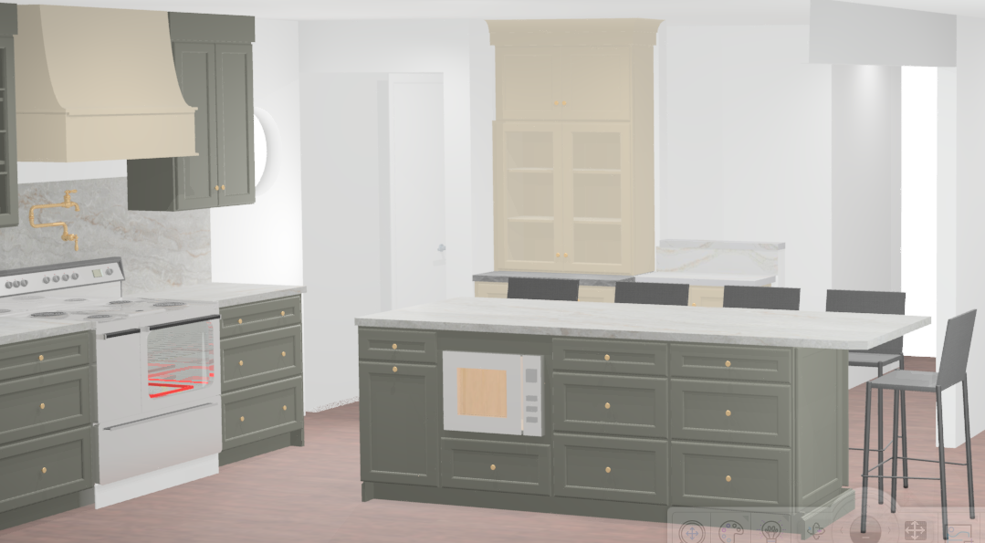 keep the lay out the same make the hood the same color as the green cabinets make into a photorealist rendering