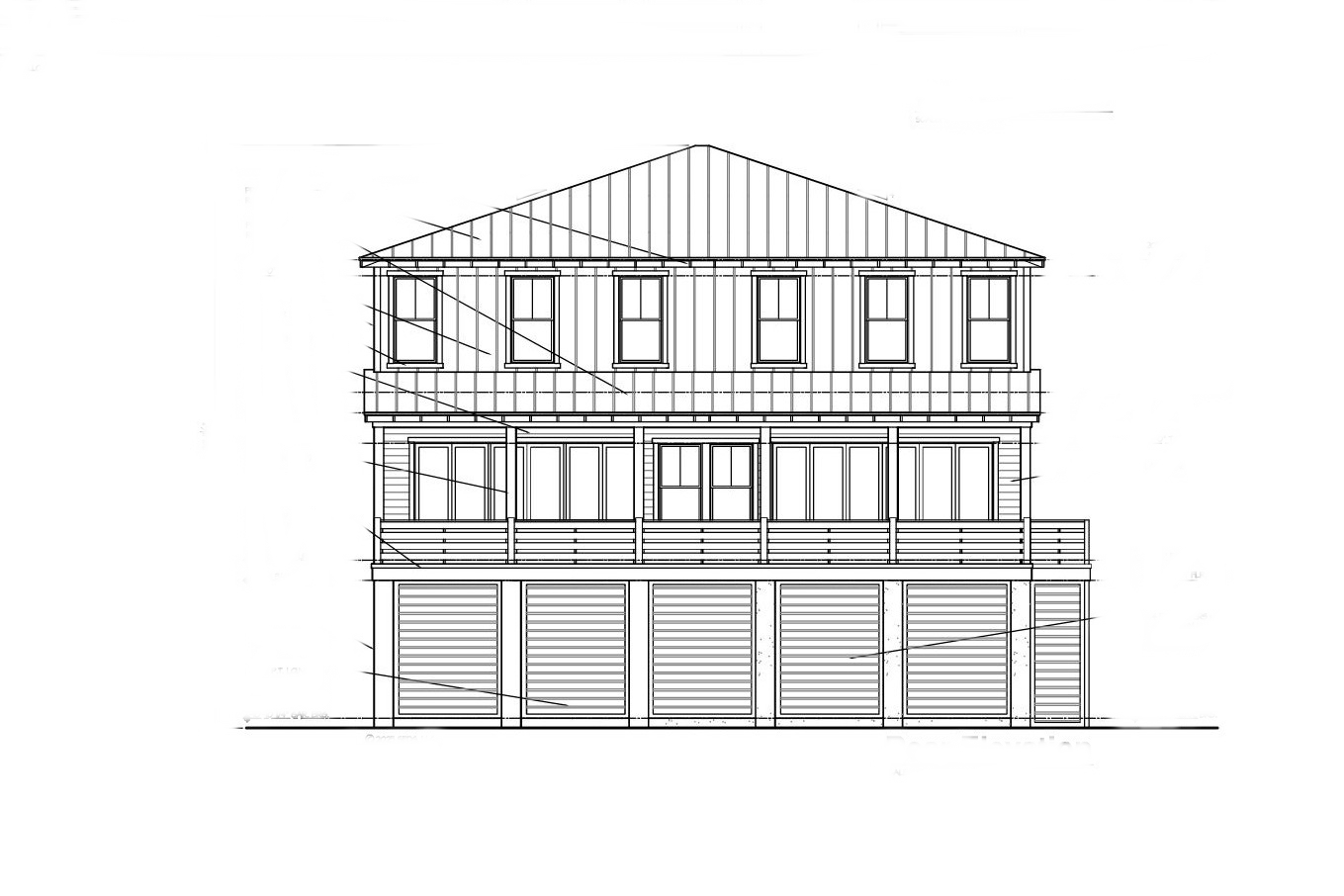 render the house exactly as shown in the sketch the exterior walls must be solid white the roof must be silver metal with a realistic clean metallic finish add palm trees to the landscape but position them carefully so they do not block cover or obscure the fa ade or main architectural view include a contemporary in ground swimming pool at the back of the house the pool must have a shallow sun shelf area with built in lounge chairs placed in the shallow end for sunbathing keep the pool design modern clean lined and minimal strictly preserve the exact structure proportions layout rooflines windows doors stairs driveway and all architectural elements exactly as drawn do not modify redesign extend remove or reinterpret any part of the building do not add extra decorative features structures or landscaping elements beyond what is specified