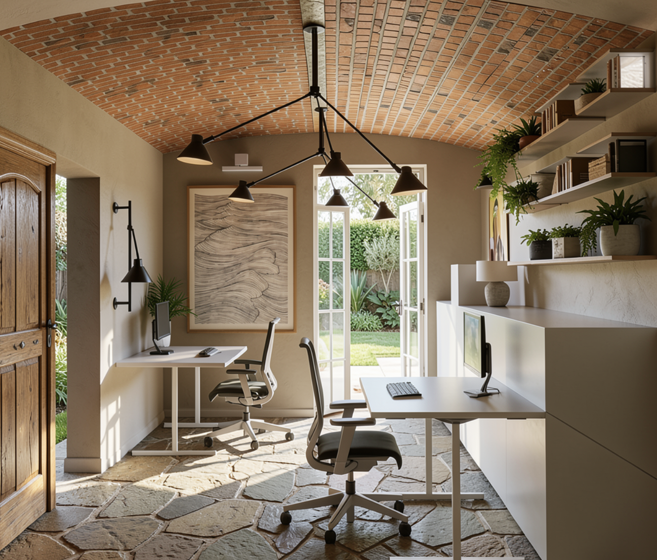 keep everything the same add a rustic rug to covr the floor add a bit more light replace wooden door to a more modern wooden door