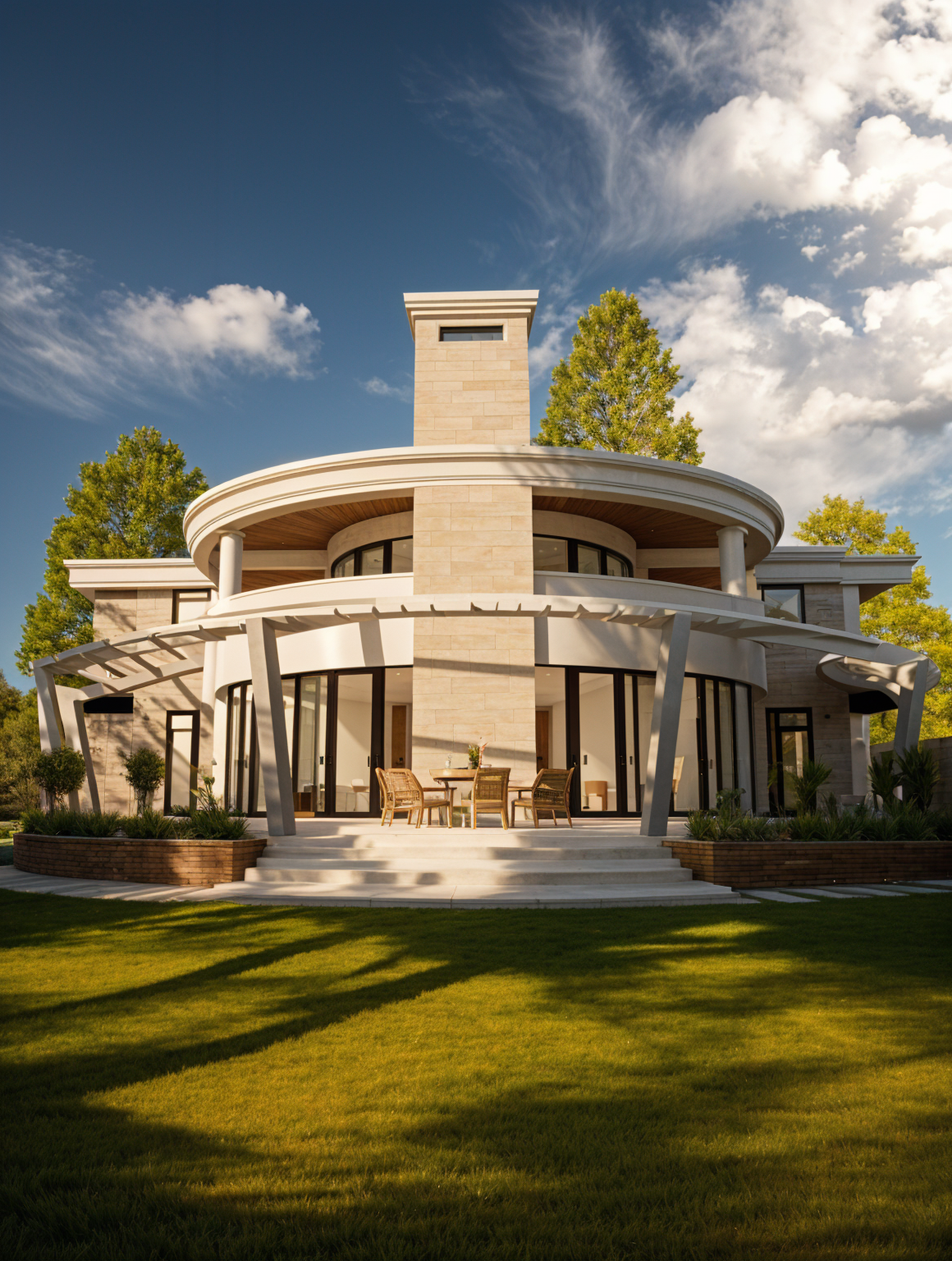 the building is surrounded by a lot of trees bushes and flowers in the garden improve the structure of architectural concrete on facades