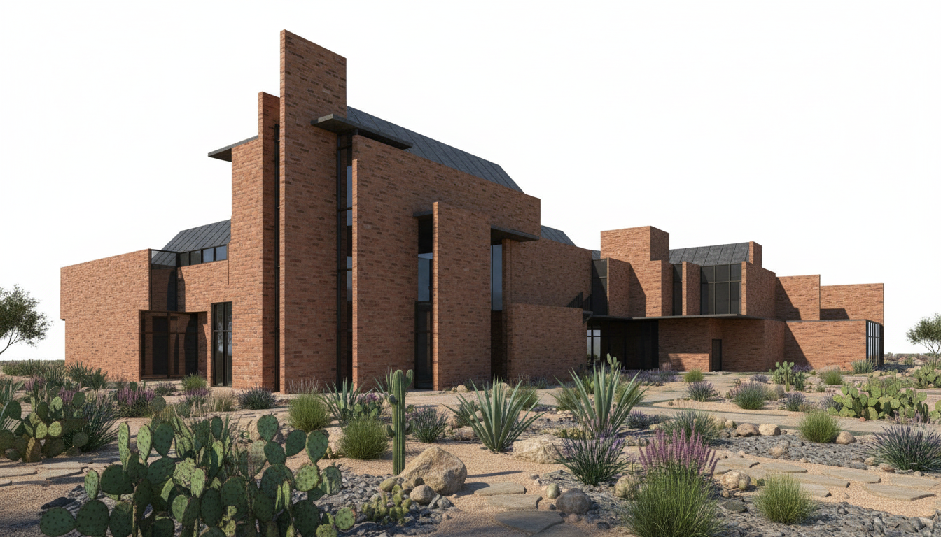a bathroom in japandi style with travertine floor and shower panels wallnut cabinets and a curved elevated offwhite mortex part where the free tub stands