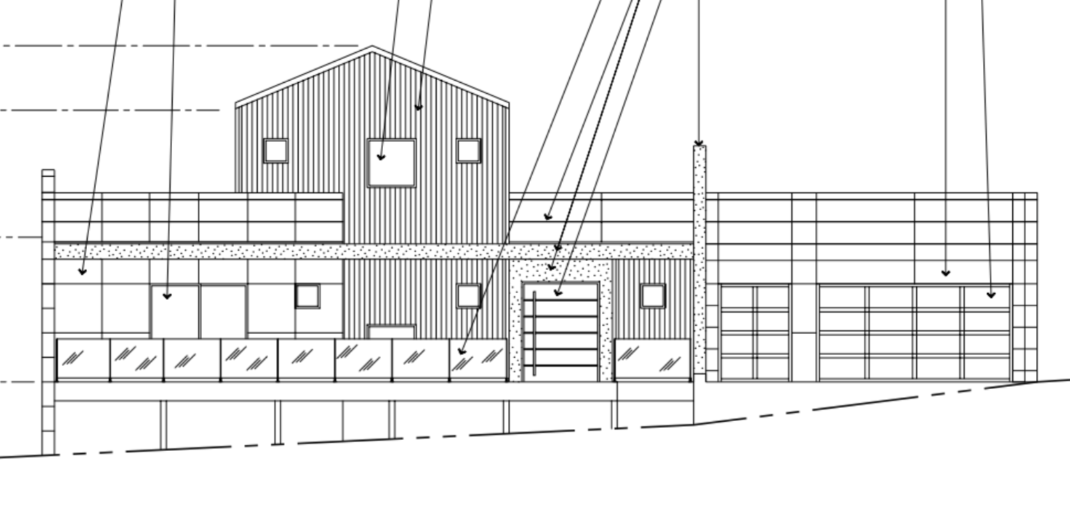 remove all lines and wording give me a realistic rendering of the project matching the style and materials shown on the elevation