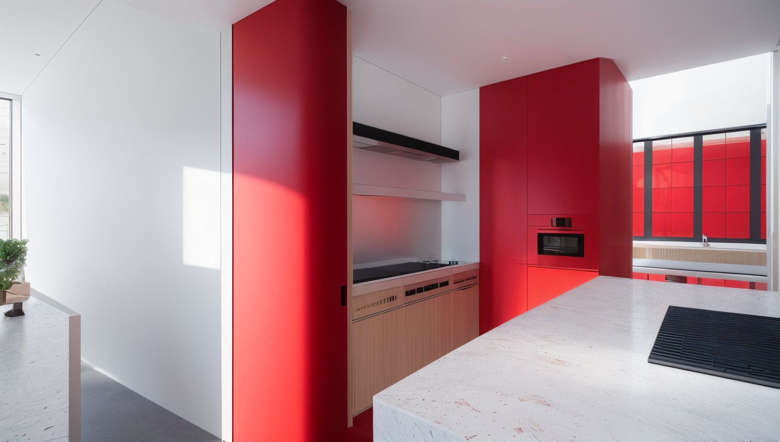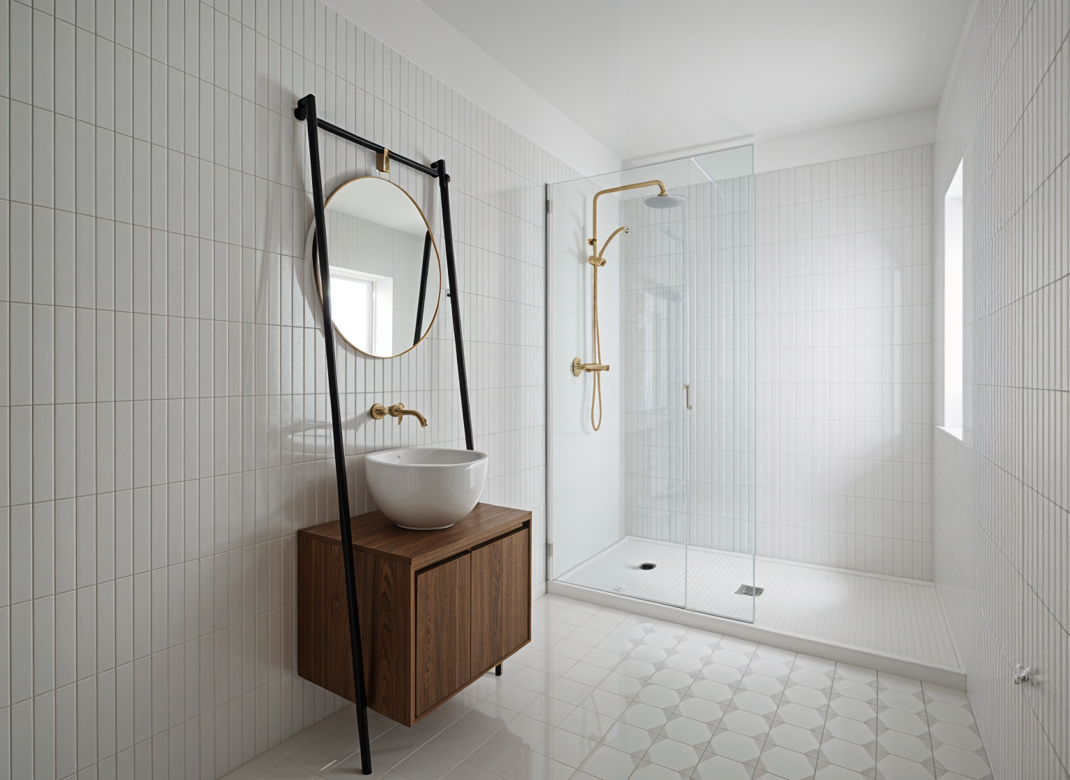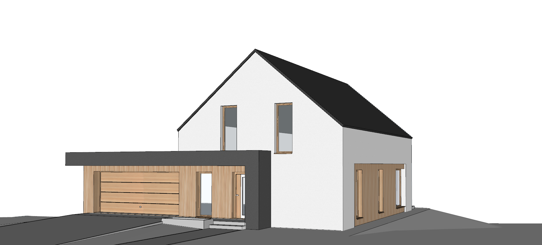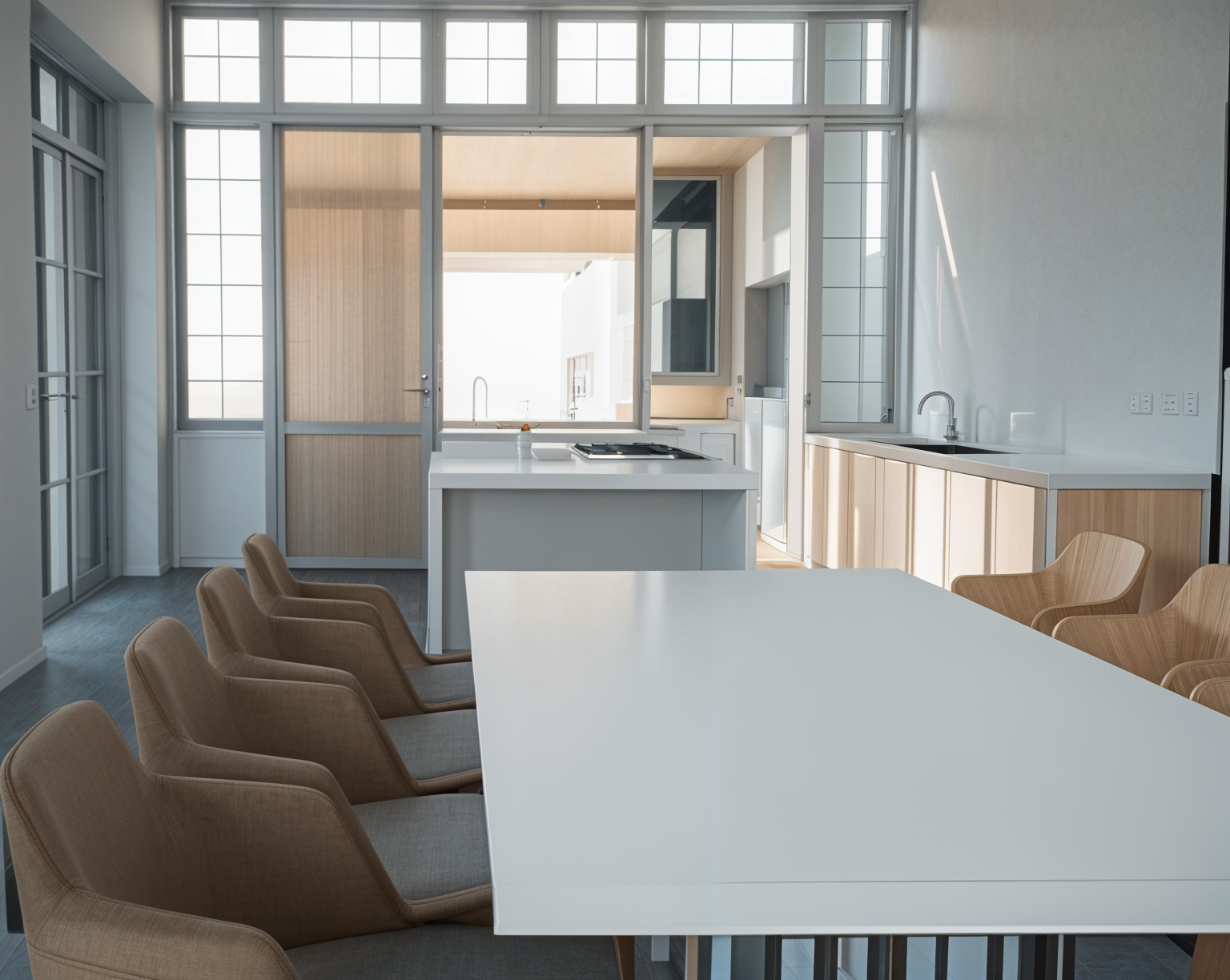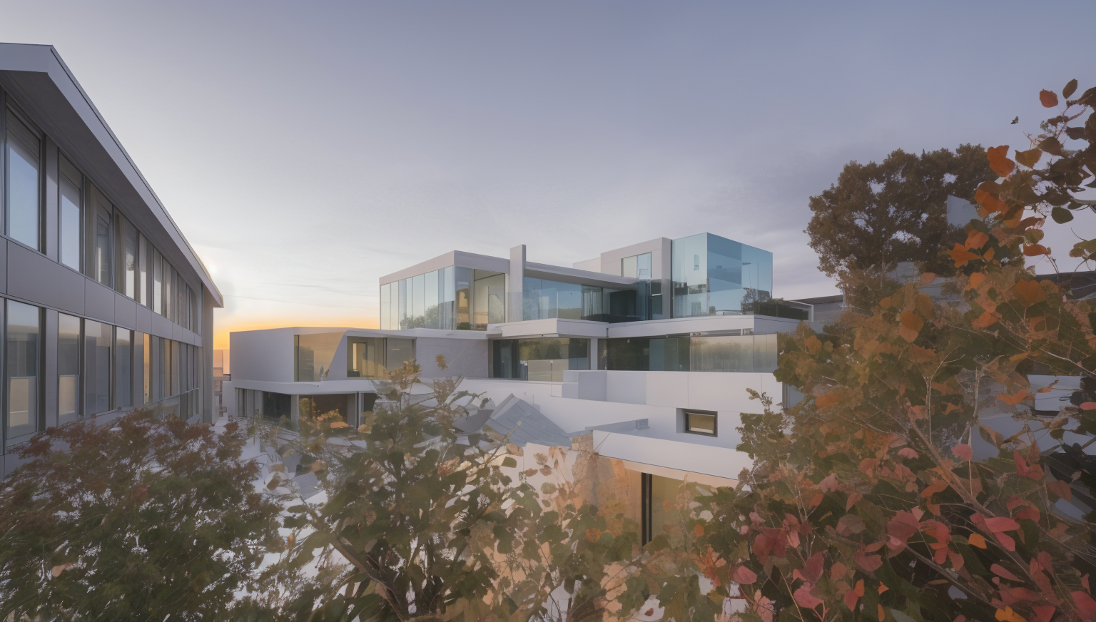 minimalism exterior shot a manicured lawn layered flower beds low maintenance shrubs native plants stone pathway leading to the entrance dark metal roof realistic walls white plaster and natural wood architecture