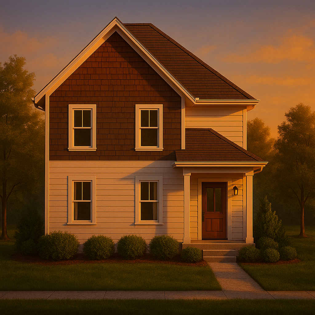 keep house details the same but make it seem like the home is in a neighborhood with similar houses and make the sizing ratio closer to 1184 x 864px change to realistic daytime color rendering