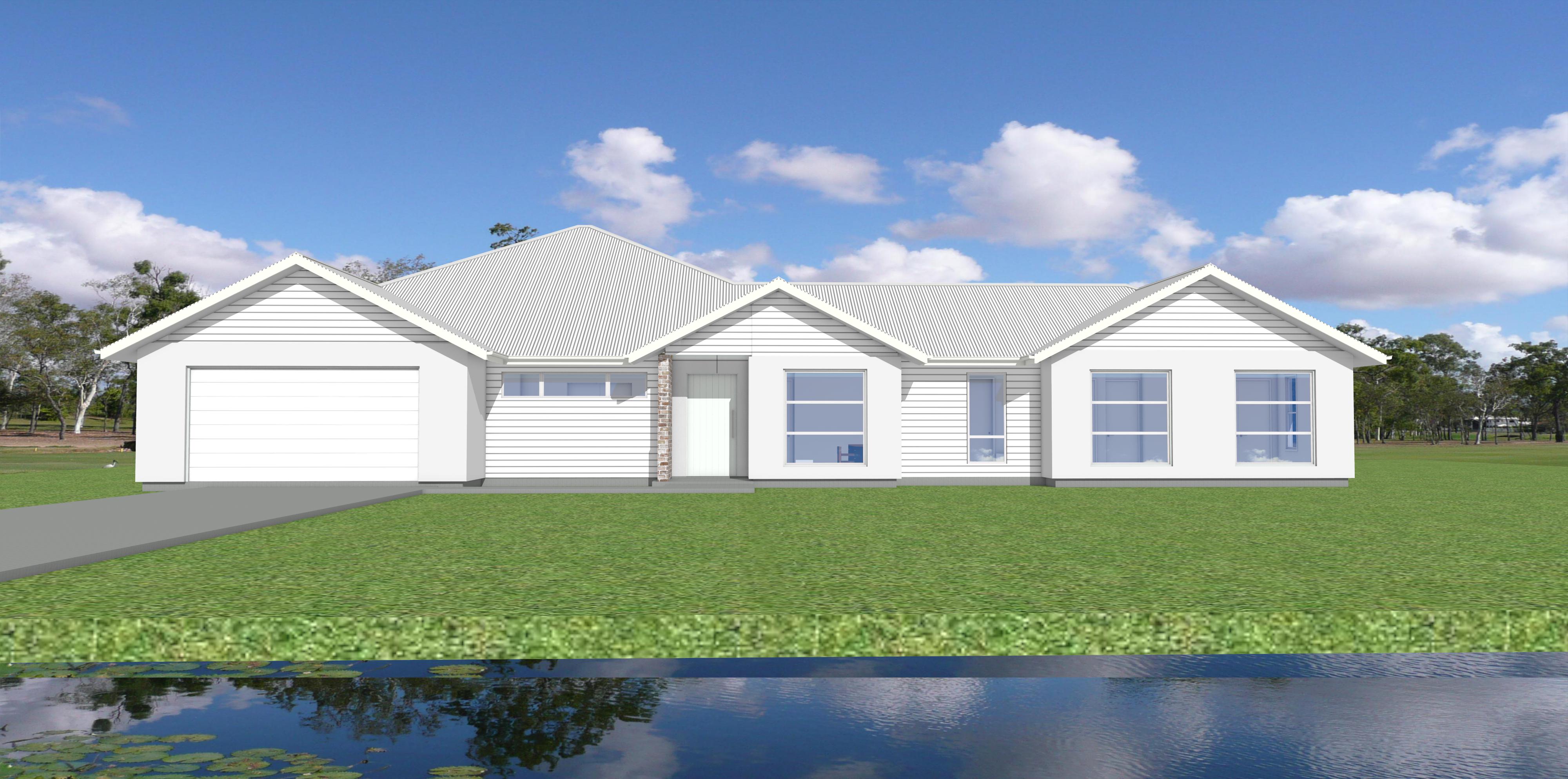 australian bush background grass lawn to front with some feature garden beds reflective glass