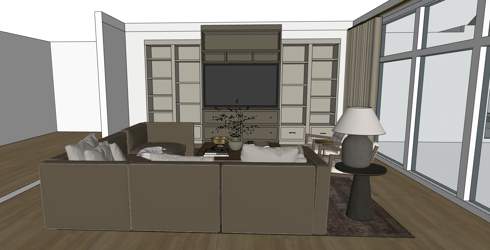 dont change any colors just make this look like a 4k high quality render with realistic furniture make the walls a soft off white