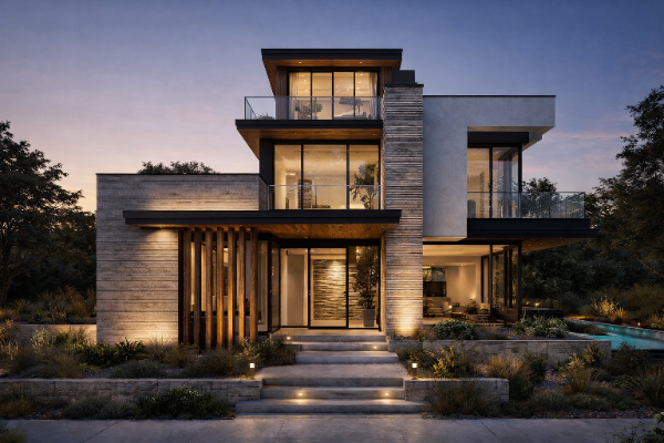 kengo kuma exterior shot contemporary house 2 story 3000 square feet lots of glass wood and stone architecture