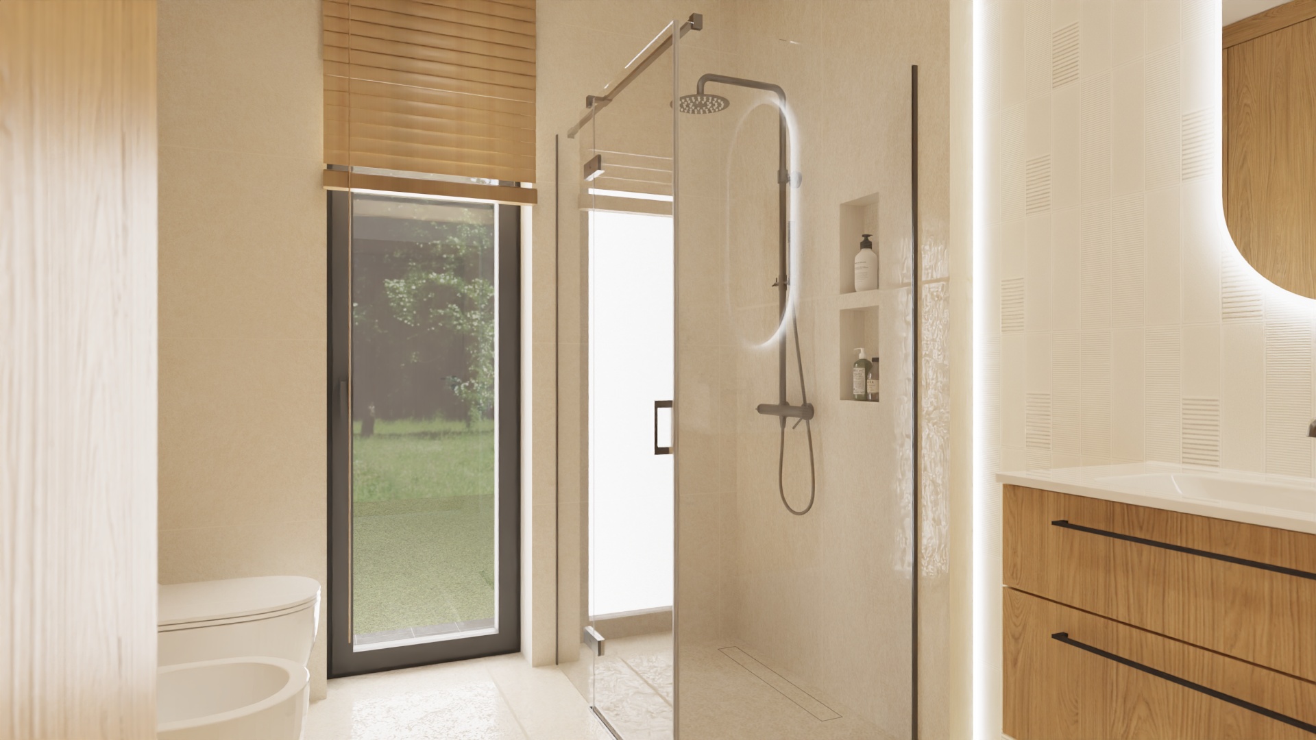 nie zmieniaj geometrii perspektywy tekstur ani o wietlenia popraw tylko odbicie okna w szybie kabiny prysznicowej