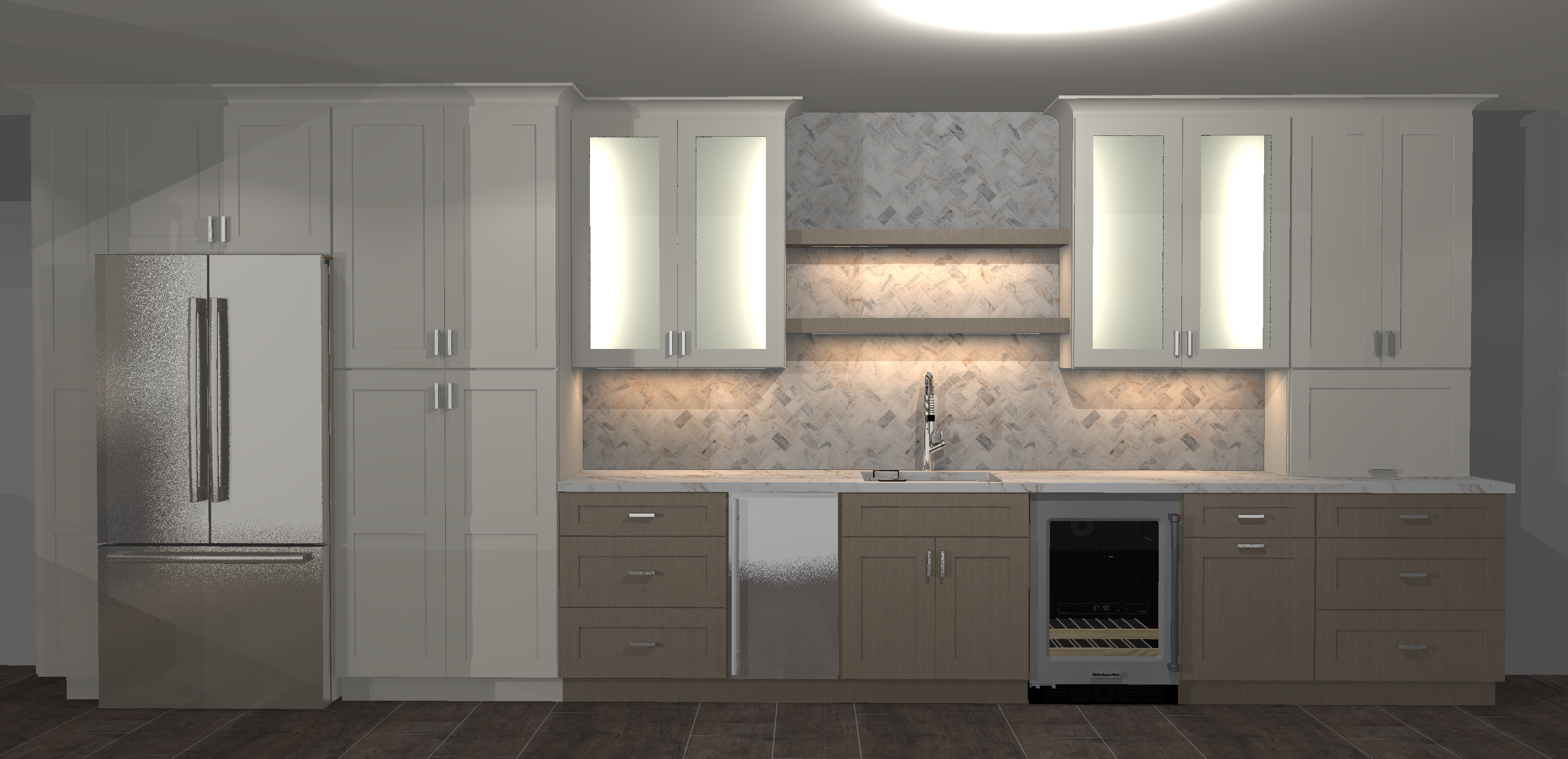 make it realistic kitchen keep layout keep finishes wall cabinets are white base cabinets has lighter stain