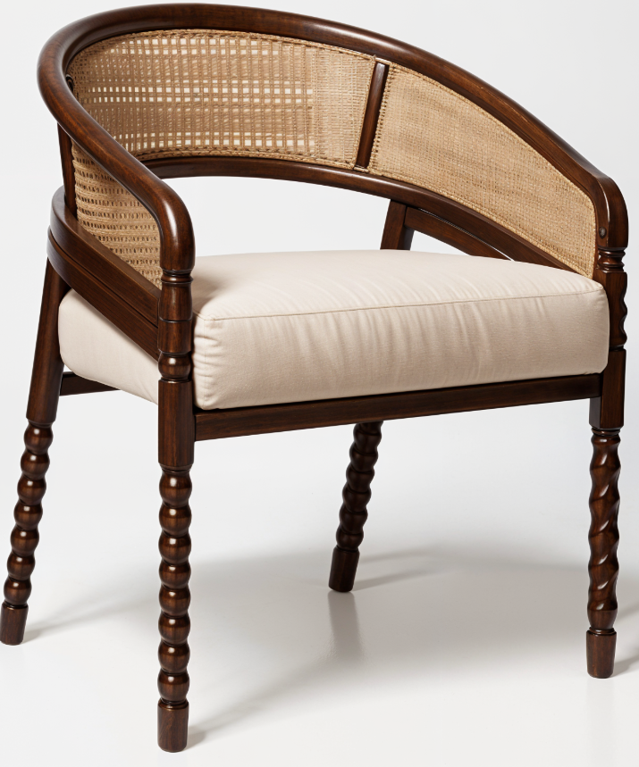 change backrest to rattan weaving for backrest wood finish twisted legs design wood finish