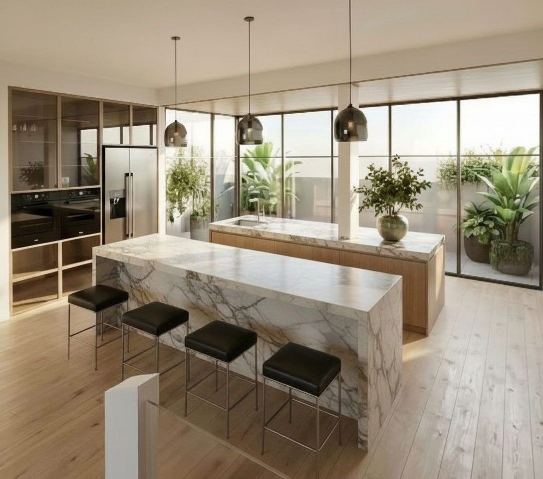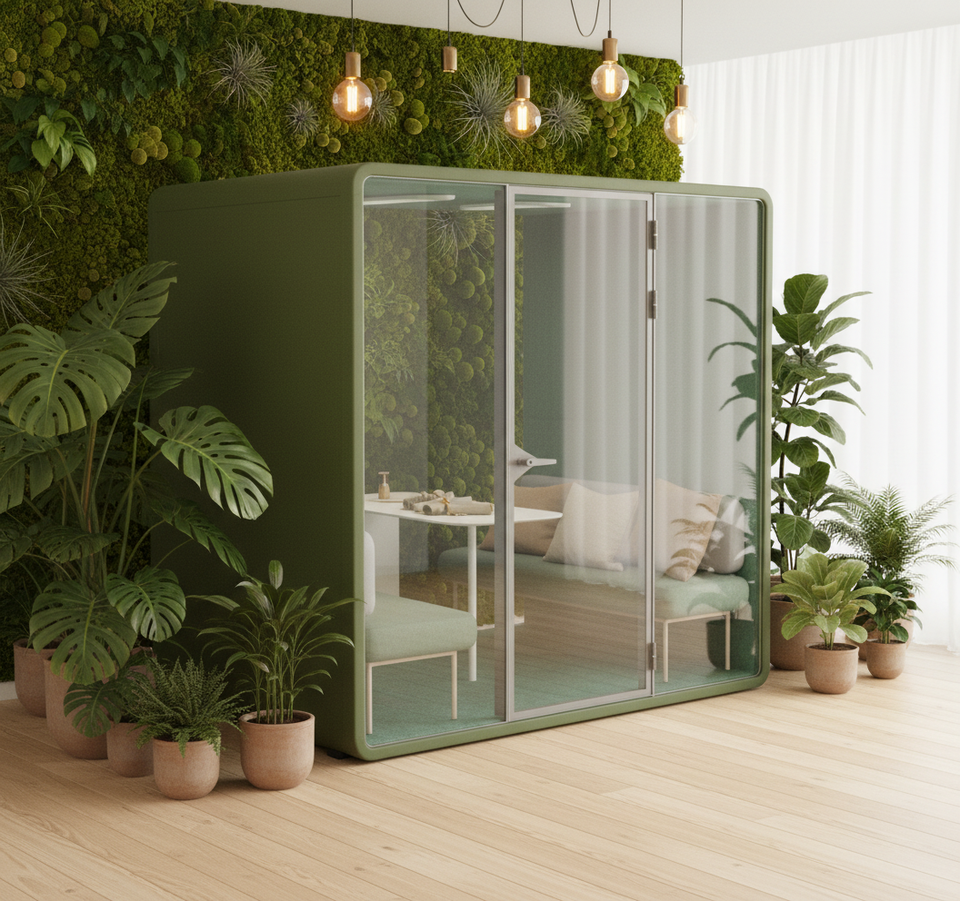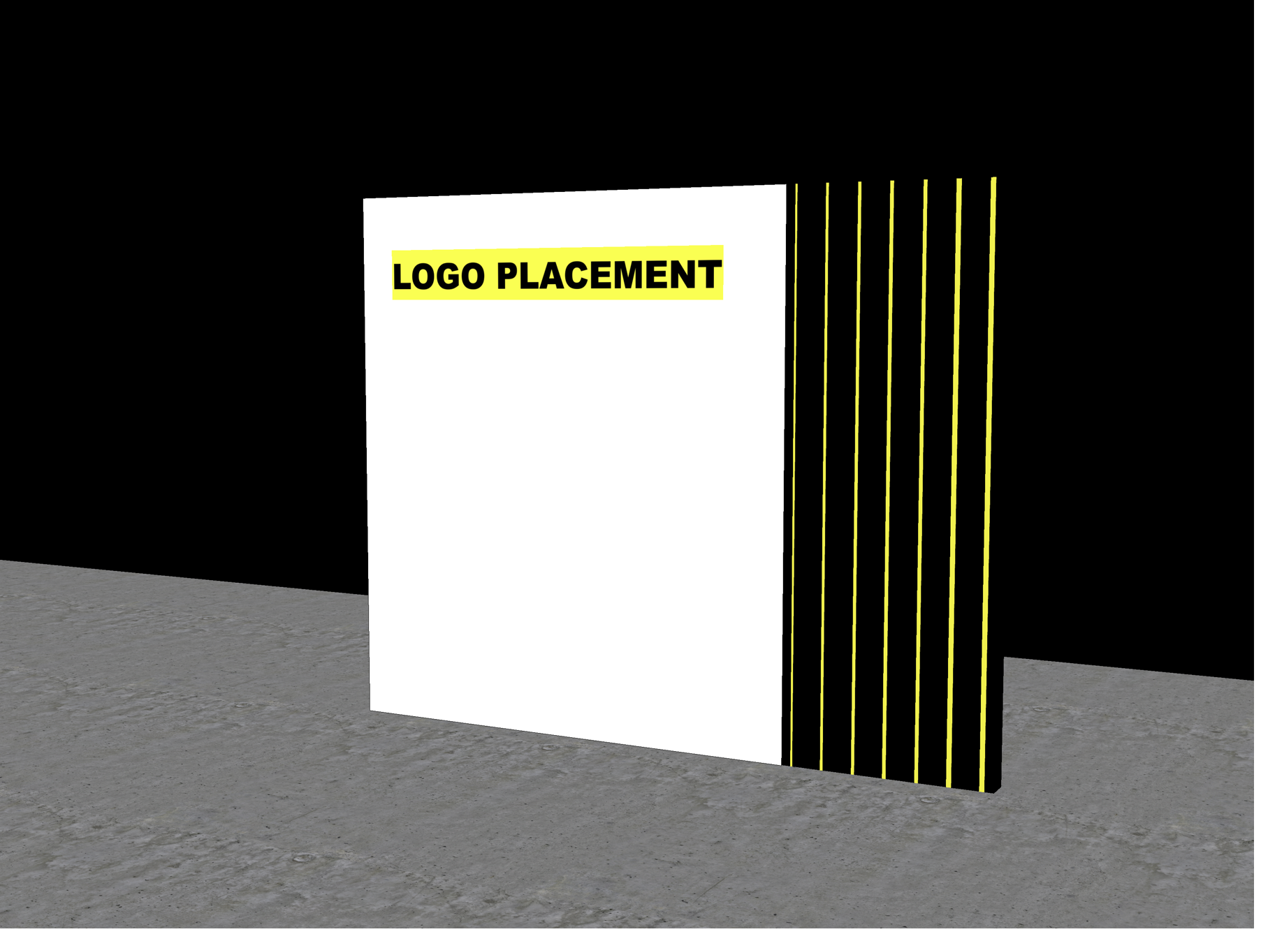 immersive stage environment with light tubes on the side enlarge design replace black background with straight black curtain drapes polished concrete floor interviewer interviewing two business people with yellow lanyard both standing in front of the wall blurred business people with lanyard walking past 16 9 size