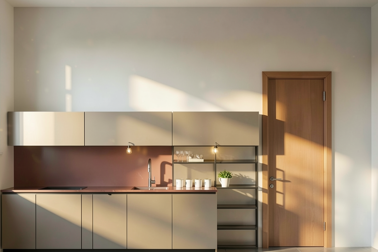 relight this interior scene using only natural daylight do not modify the architecture materials finishes furniture or camera position in any way all ceiling lights must remain turned off and no artificial light sources should be visible or contribute to the scene the space should appear illuminated exclusively by daylight entering through the existing windows create a bright evenly lit atmosphere with soft diffused light that fills the entire room light should penetrate deeply into the space gently illuminating walls furniture and corners without leaving dark or heavy shadow areas avoid strong directional sunlight or harsh contrasts shadows should be soft subtle and low in contrast use balanced exposure so the scene feels luminous but still realistic avoid overexposure or blown highlights and ensure no areas are underexposed maintain accurate material colors with a neutral to slightly warm daylight tone whites should appear clean and clear not gray or yellow the final result should feel like a naturally bright daytime interior calm and airy with smooth light gradients and a soft photorealistic quality similar to architectural photography lit only by natural daylight