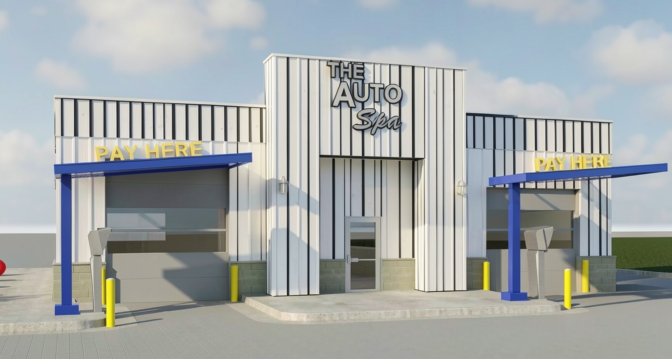 white vertical nuform panels board batten painted black no knots in wood blue canopy detached from building remove shine no metal siding