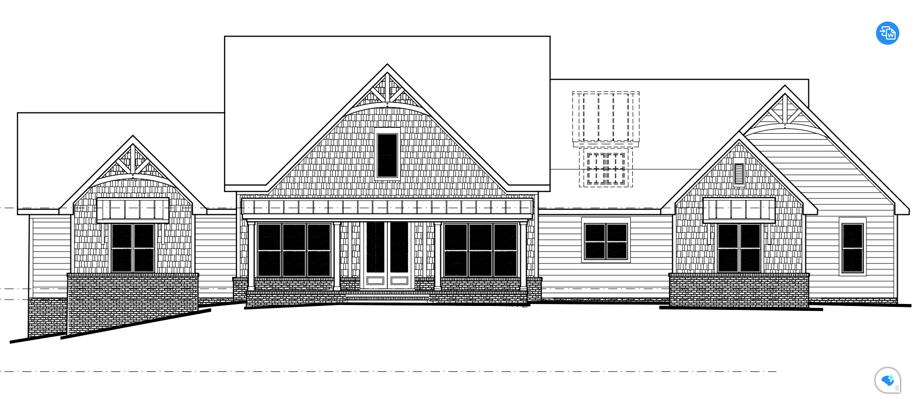 this is a sketch of a white farm house the windows are white the roof is oyster grey architectural shingles the porch and window over hangs have galvalume metal roofs the bricks are light tan colors with white grout the posts and gable brackets are medium light oak stained the front door is medium dark oak stained architecture