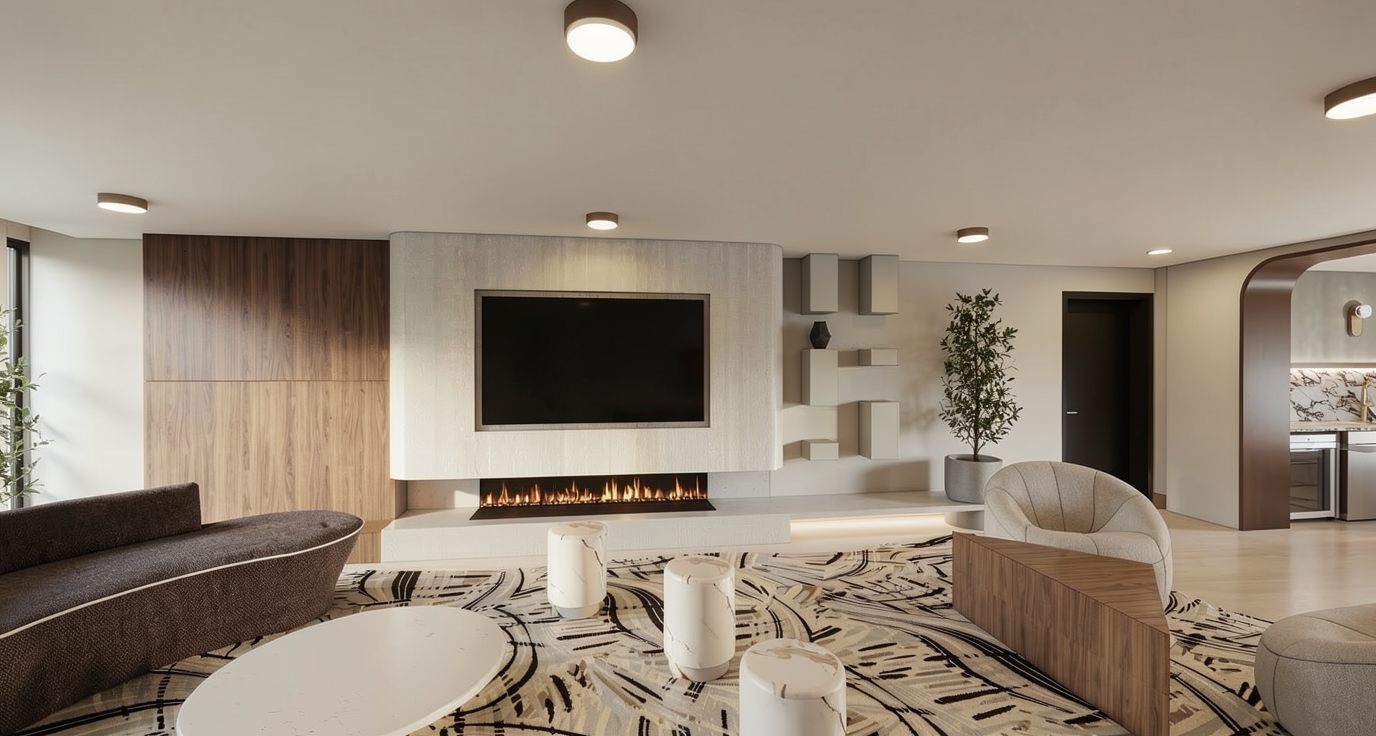 render fotorrealista de alta gama 8k estilo cl sico contempor neo un dormitorio luminoso con una cama en primer plano con edred n de lino beige texturizado a la izquierda una c moda de madera de nogal oscuro con vetas detalladas un espejo circular con marco de sol dorado y una planta peque a al fondo un banco bajo la ventana con cortinas gris azulado y una silla de terciopelo capiton en color lavanda oscuro iluminaci n natural intensa proveniente de puertas correderas de cristal a la derecha que muestran un balc n soleado creando sombras suaves y oclusi n ambiental profunda l mpara de ara a cl sica con bombillas c lidas y un roset n de techo detallado suelo de madera de roble paredes blancas con molduras elegantes atm sfera acogedora y fotorrealismo extremo renderizado en unreal engine 5