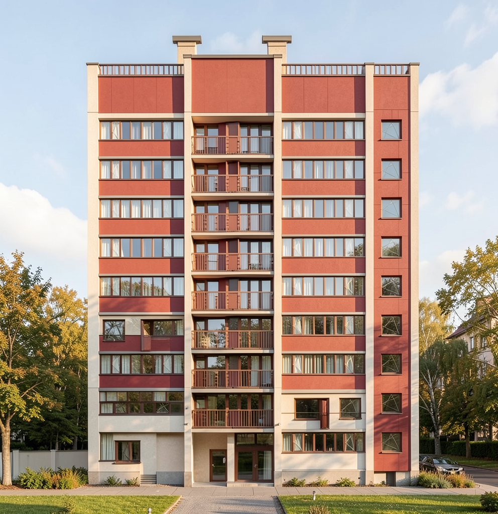 ventilated facade with swisspearl fiber cement boards in red tones this facade no windows