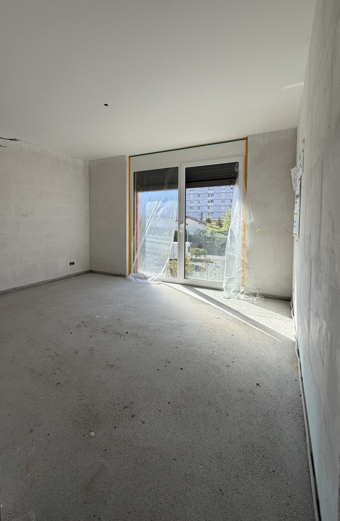 chambre de petite fille de 10 ans lit perpendiculaire au mur de gauche bureau avec une fillette qui ecrit commode avec bibelots dessu sol parquet longiligne brun claire mur cr pis fin blanc plafond pl tre lisse voilage ouvert et rideau sur la fen tre tapis devant le lit lampe au plafond suspession