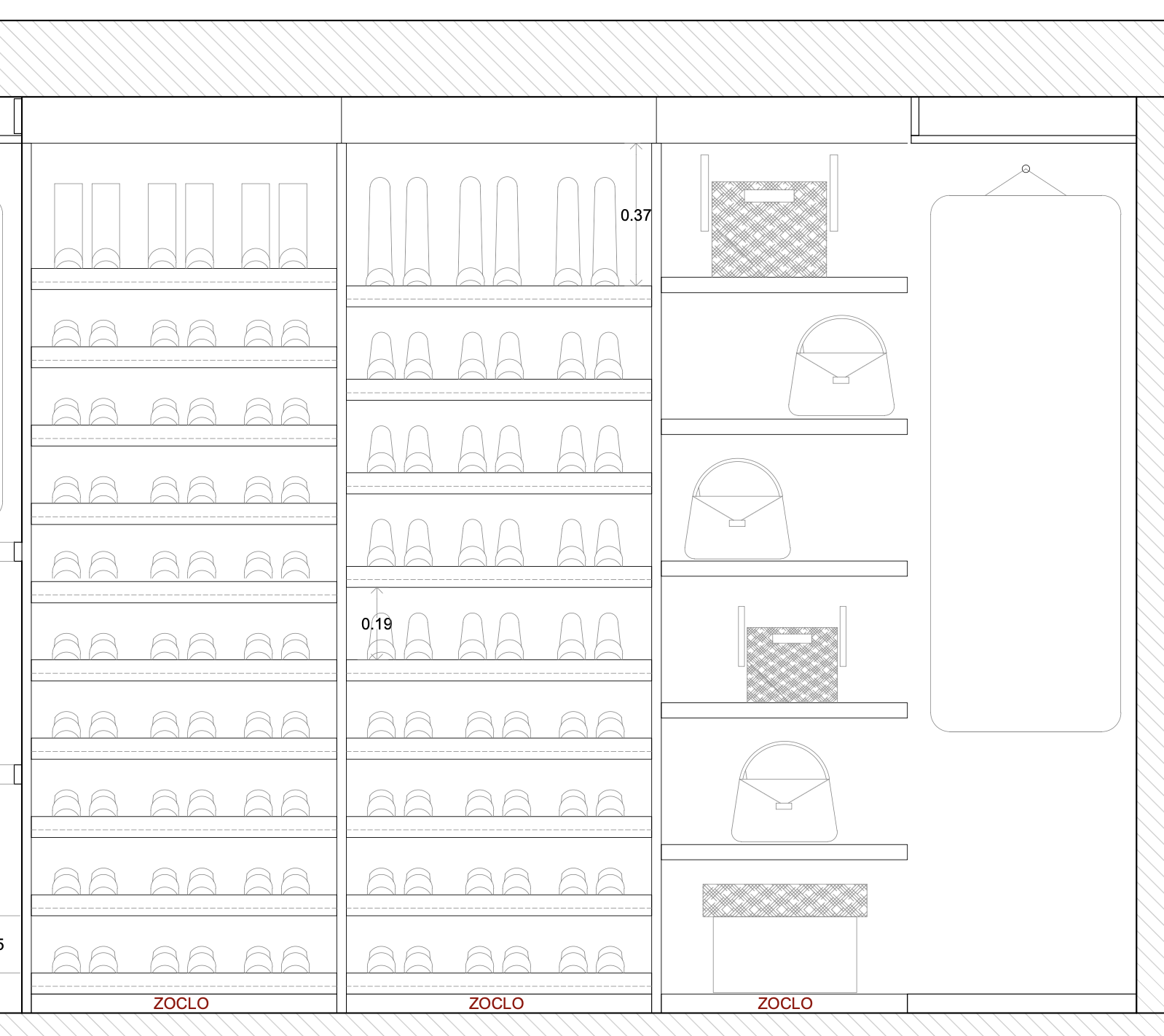 walk in closet with natural oak featuring indirect lighting at the front of each shelf and hanging rails elegant shoes along with minimalist decorative accessories