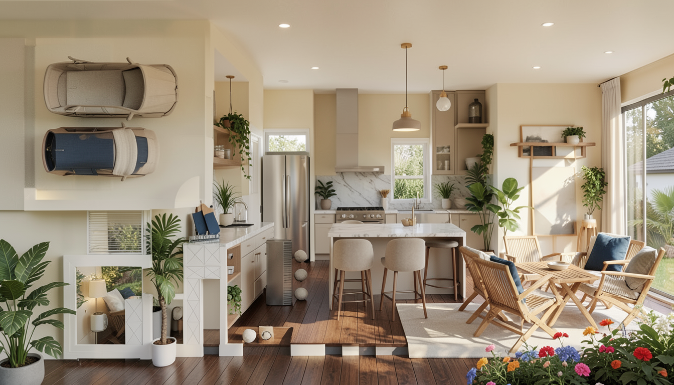 zaha hadid interior shot an architectural render of a large scale freestanding digital art installation situated in the center of a transit concourse the installation consists of two independent curved sculptural structures standing on the floor in the foreground a convex led screen curves toward the camera behind it a concave led screen curves away creating an organic serpentine pathway between the two these are standalone objects not attached to the building the surrounding environment is strictly modeled after a modern station massive circular concrete pillars low white ceilings with black linear tracks and a high gloss white terrazzo floor the screens are the primary light source casting vibrant reflections across the polished ground photorealistic 8k wide angle architectural shot architecture