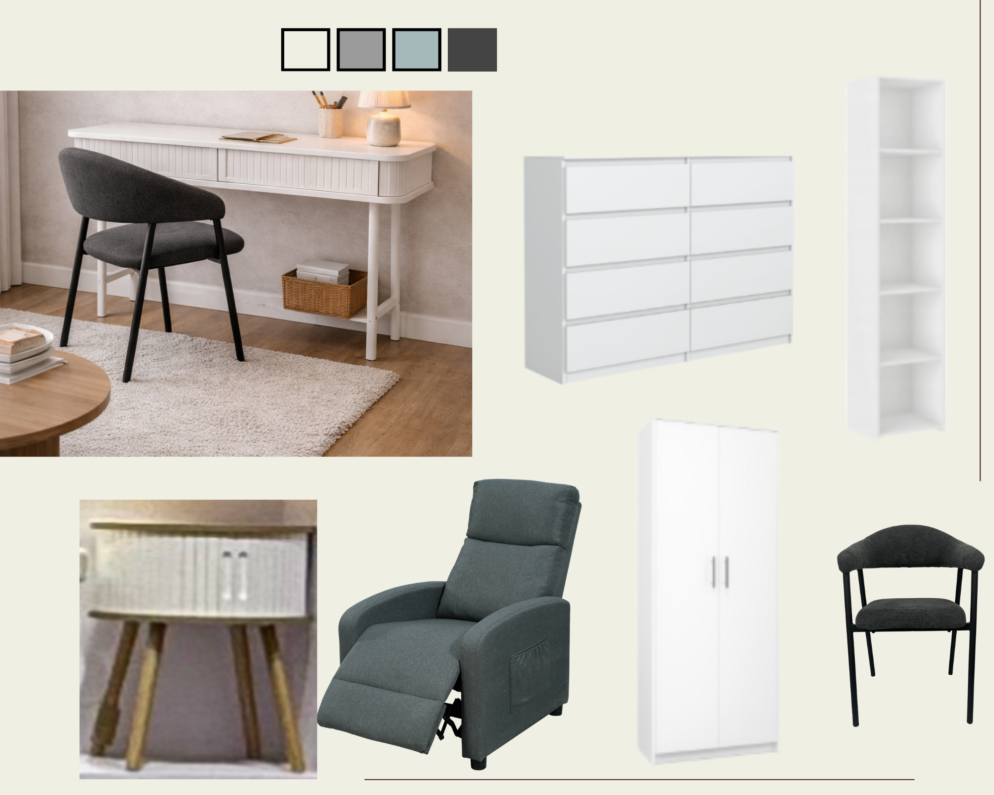 create a realistic interior visualization of a small home office in a 10 m apartment room typical block flat the space should feel functional cozy and modern with good use of limited space important use the exact products from the provided moodboard