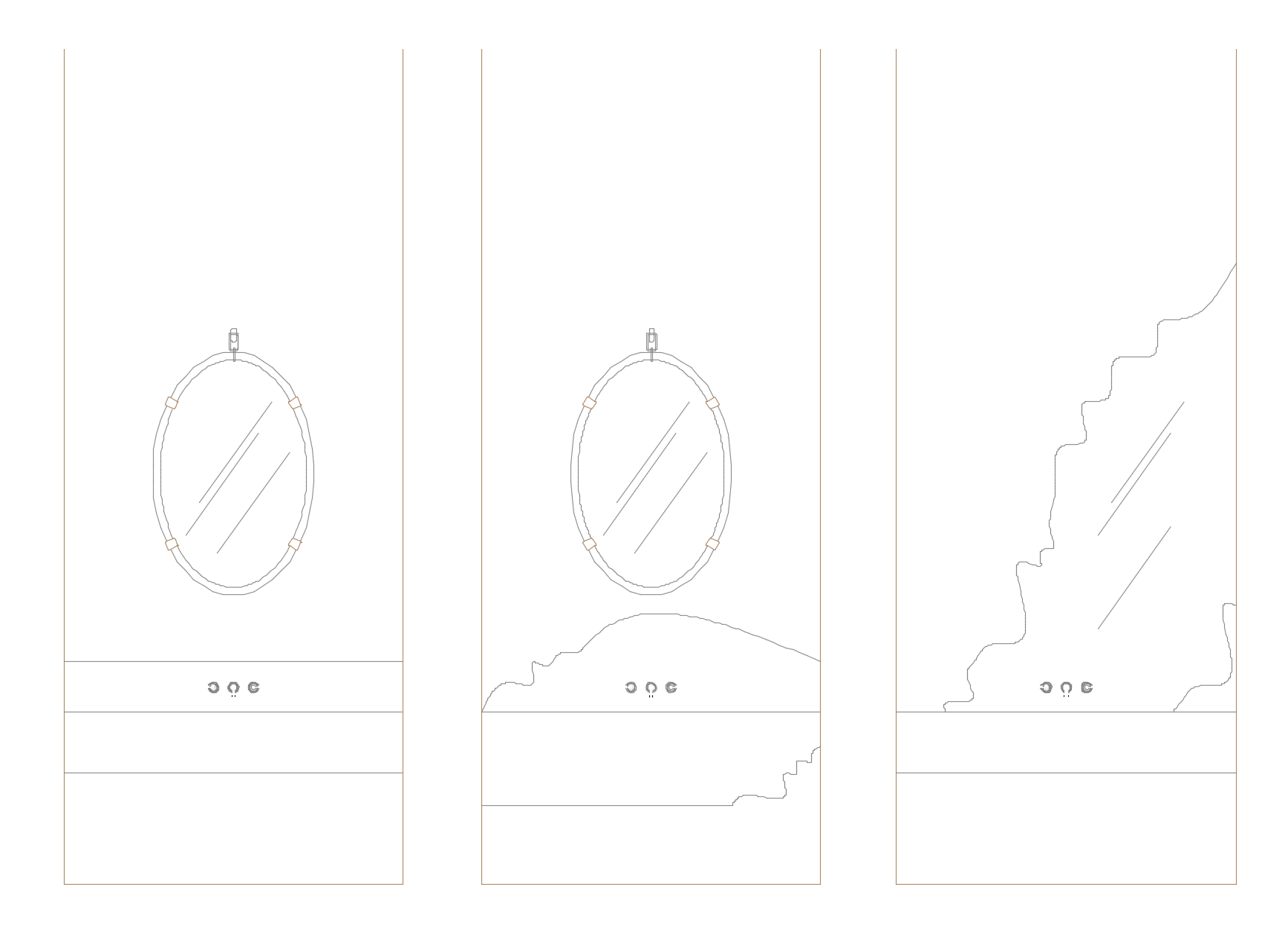 render vanity in pink onyx and copper faucet mirror is a white oak