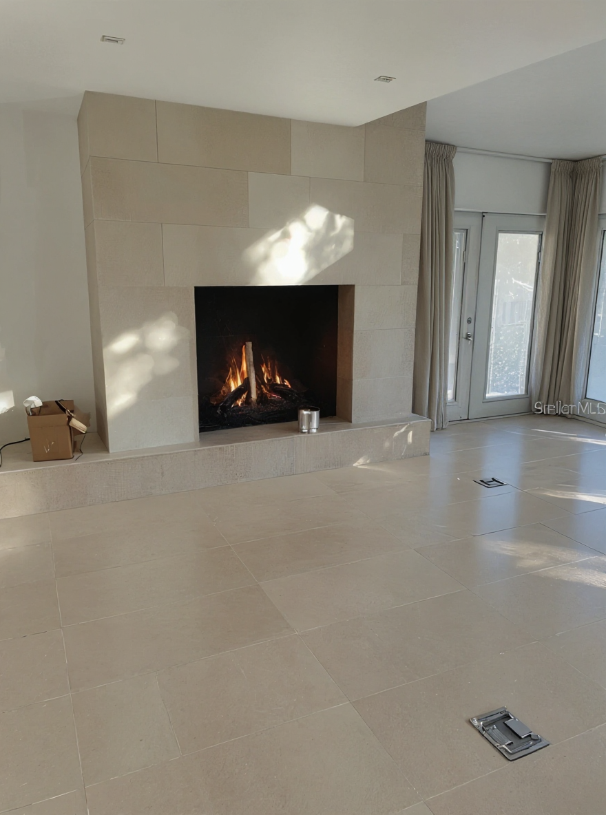 remove floor box add red pattern pillows remove cardboard box