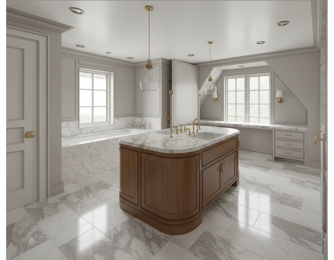 fai i colori della struttura degli arredi centrali della stessa tonalit di quelli sulla destra la pavimentazione sotto gli arredi centrali falla in legno color tortora invecchiata