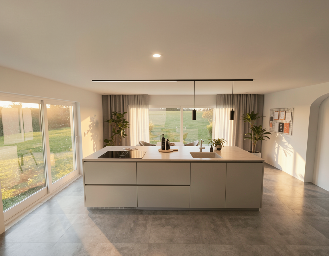 create a clean architectural kitchen elevation rendering from the provided drawing maintain the exact cabinet layout proportions spacing and alignment from the elevation do not redesign move resize or reinterpret any cabinetry or appliances the rendering must remain a flat 2d orthographic elevation render as a technical architectural joinery elevation sheet not a 3d rendering