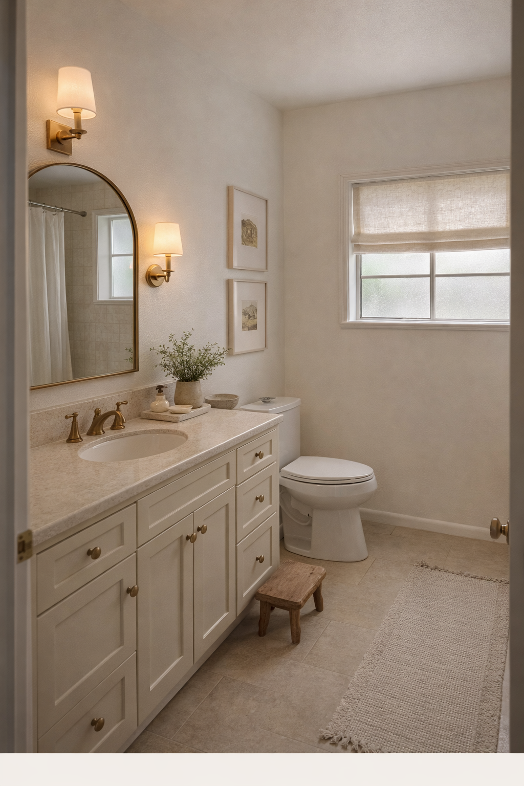 remove the light above the mirror so there is just plain wall there keep the sconce light on the side of the mirror