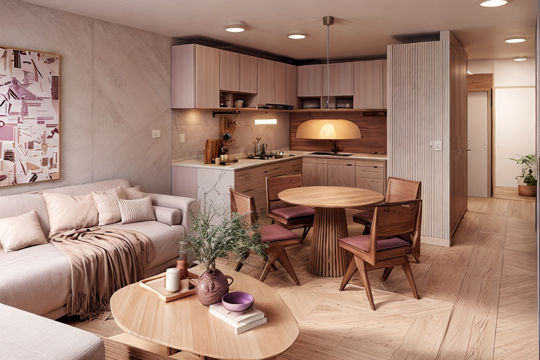 interior shot do not change chairs or couch or table keep same parquet dont change light pendant