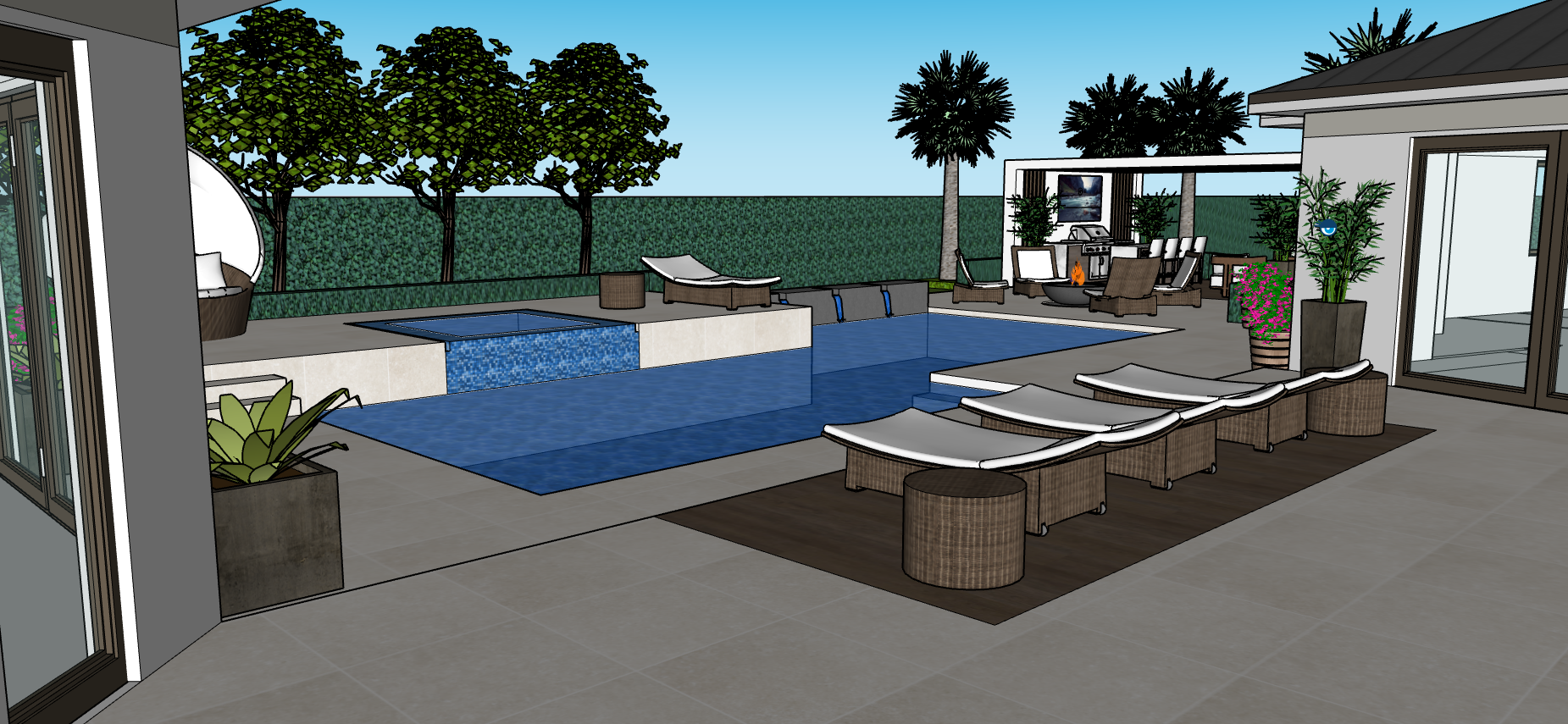 make image night time light up the pool light up trees behind light up palm behind