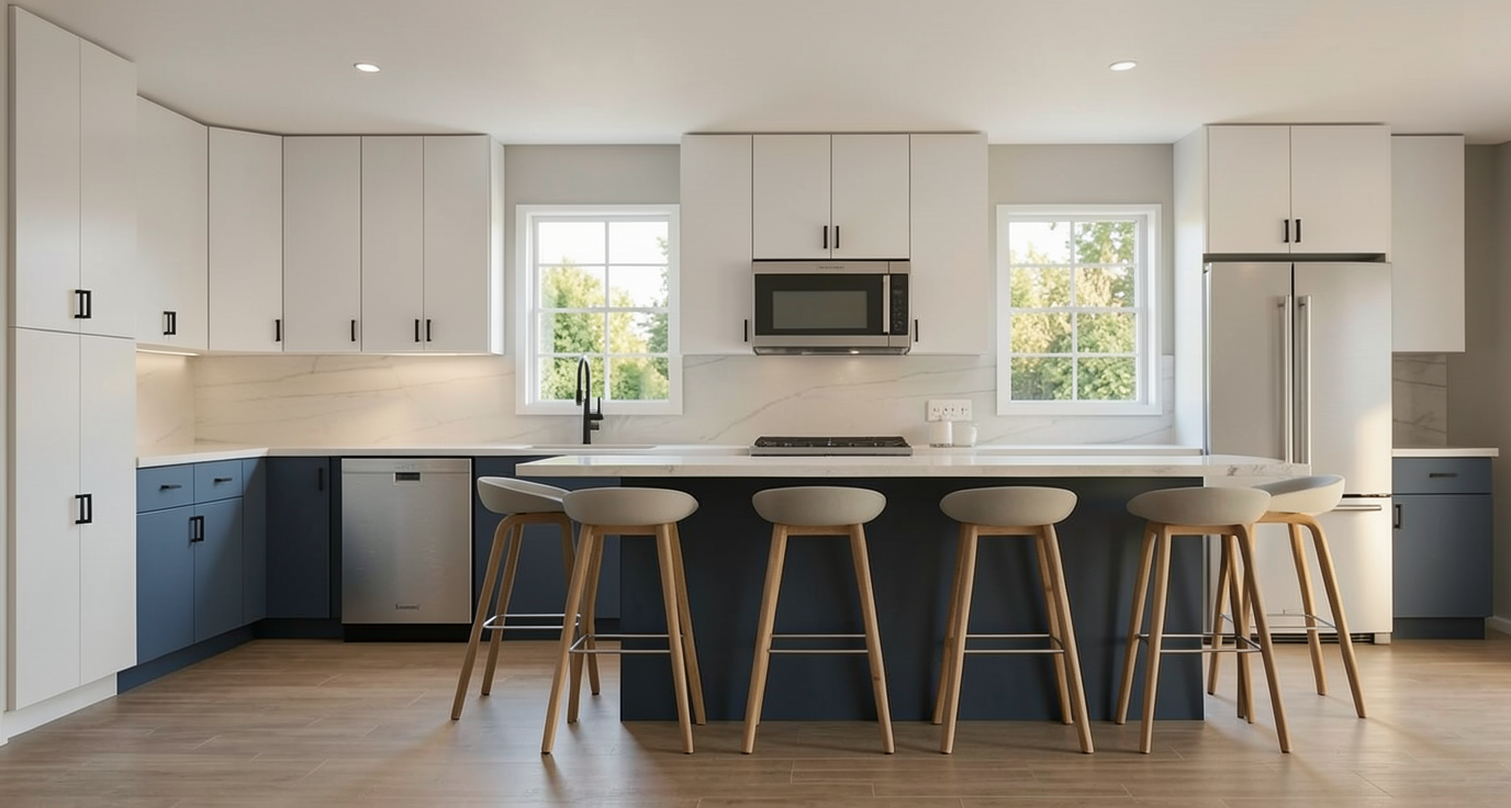 a manicured lawn layered flower beds low maintenance shrubs native plants stone pathway leading to the entrance