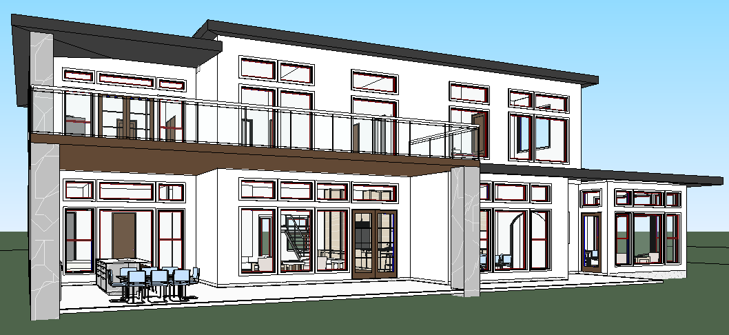 add natural lighting make look realistic there is a far away forest with a field of grass add minimal landscaping add minimal clutter and potted plants around
